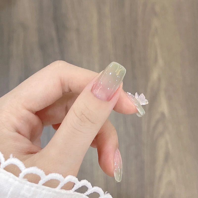 纯手工光疗穿戴甲仙草绿蝶穿戴甲批发成品重复使用美甲贴片可拆卸