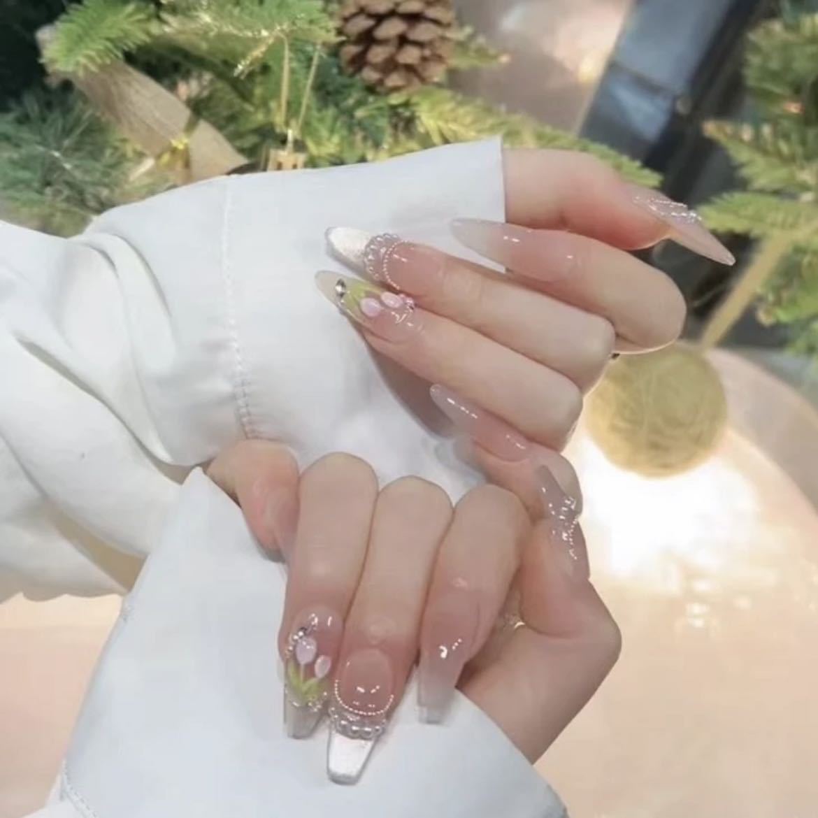 纯手工光疗穿戴甲郁金香花园穿戴甲批发成品重复使用美甲贴片短款