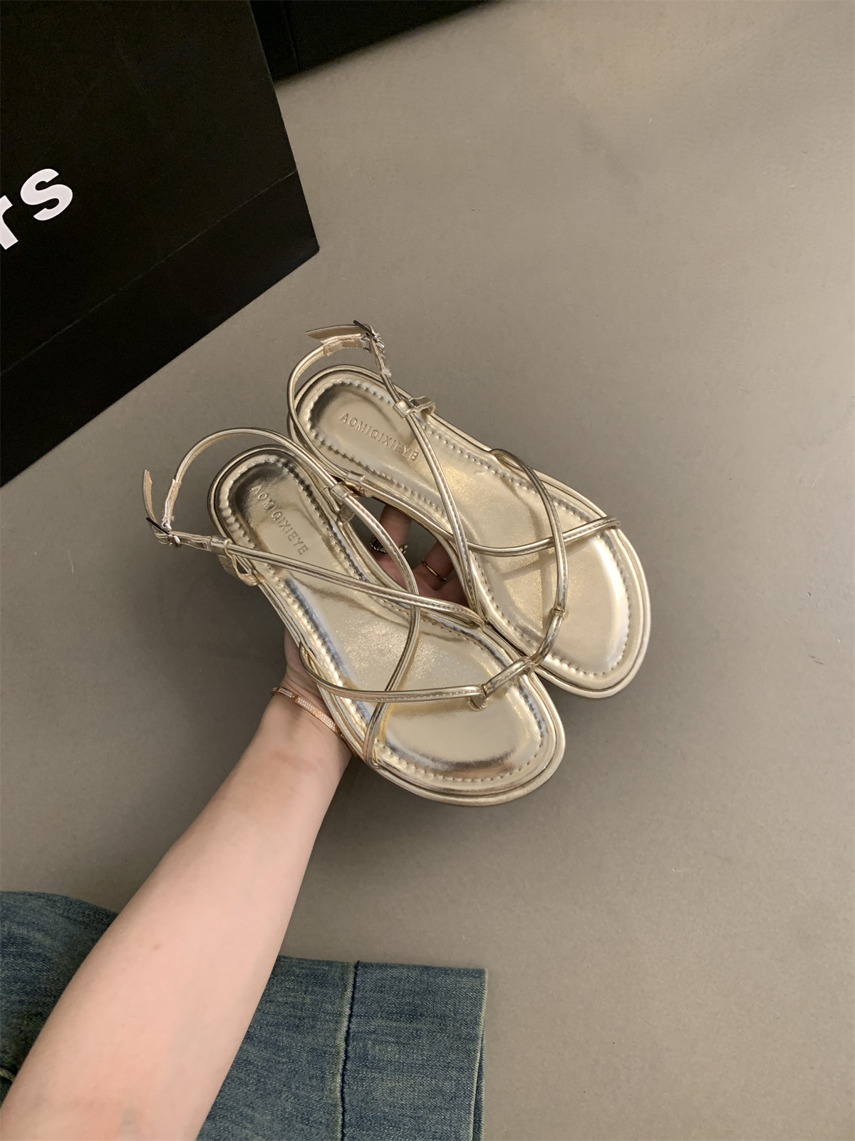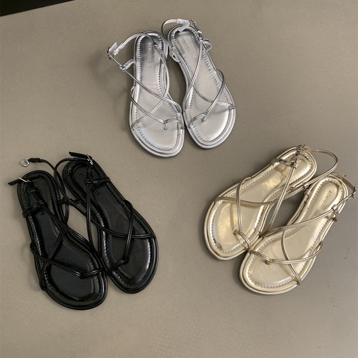 女士凉鞋女夏季外穿新款韩版法式绝美仙女风交叉细带软平底罗马鞋