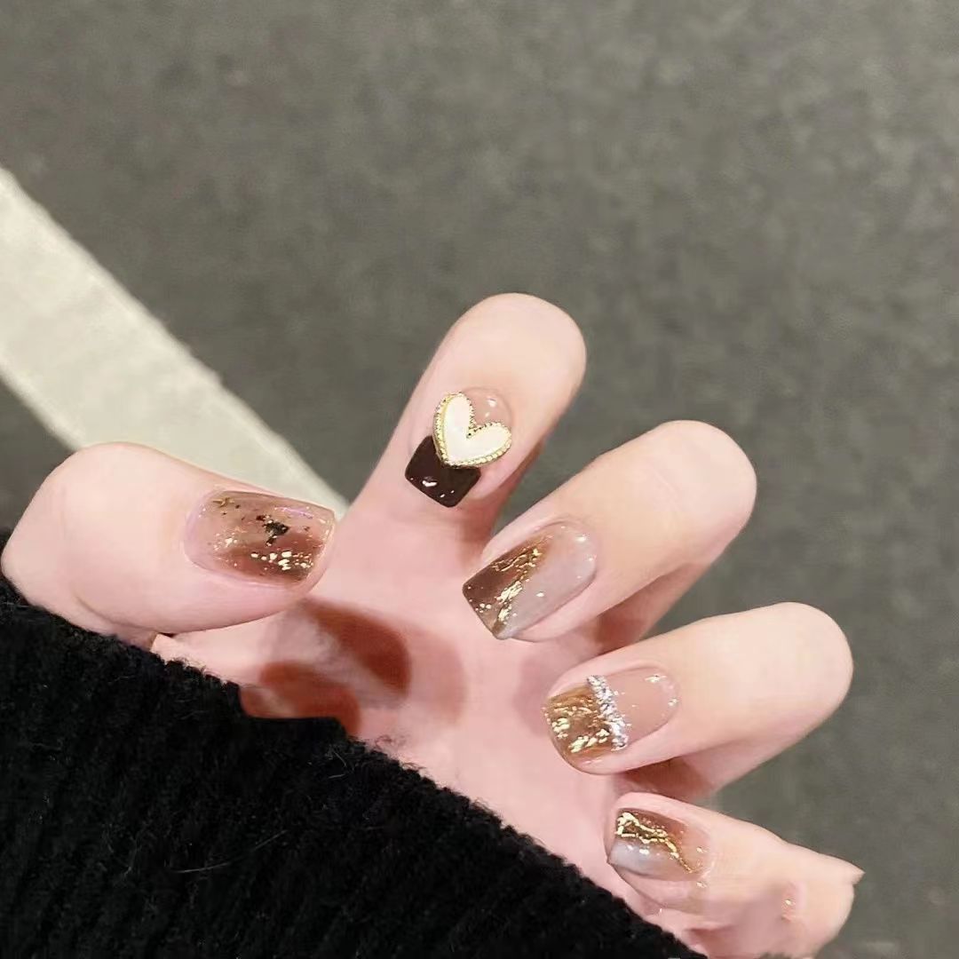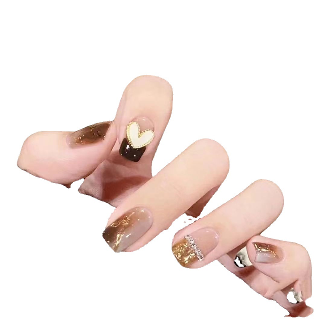 纯手工光疗穿戴甲 短梯贝母爱心穿戴甲批发成品重复使用美甲贴片