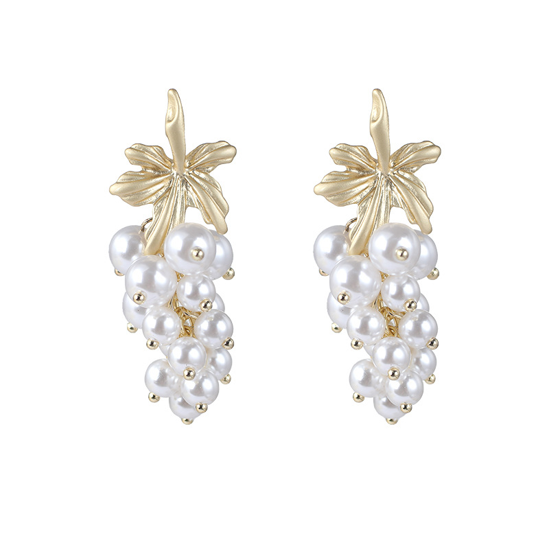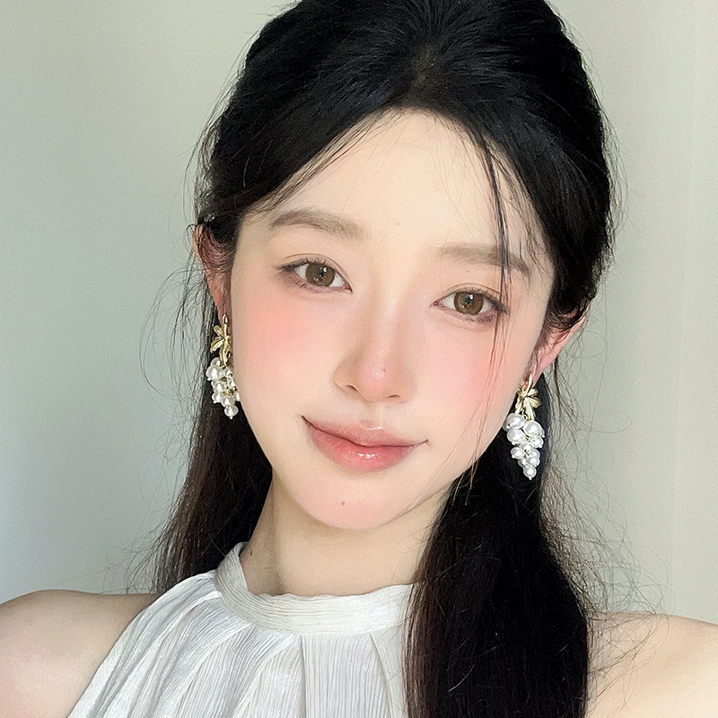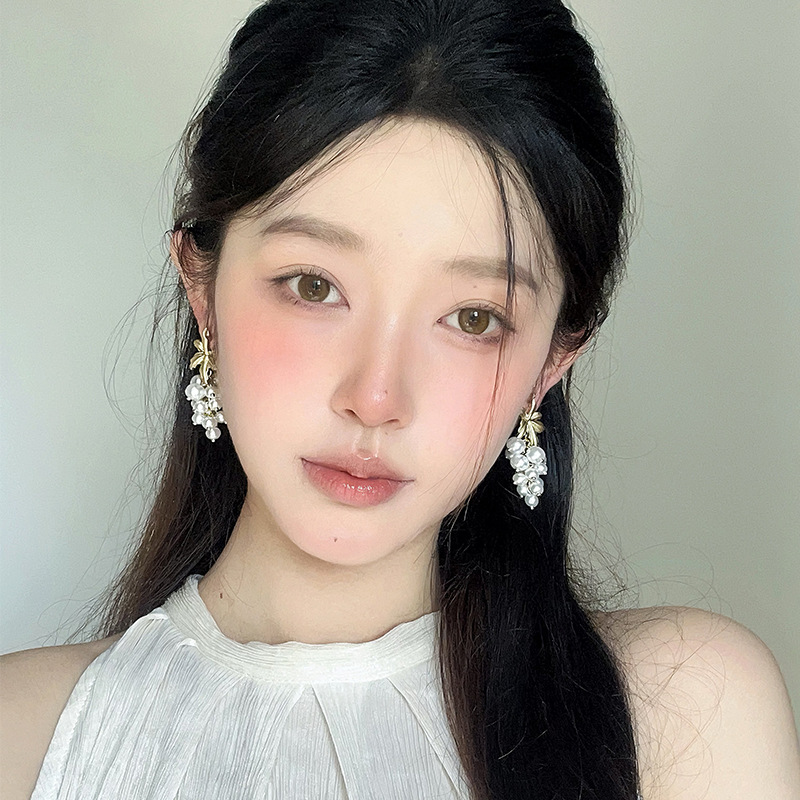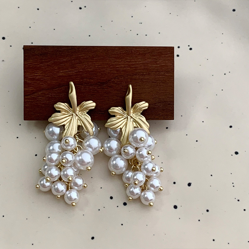 法式气质珍珠葡萄串耳环女 新款复古vintage中古耳饰夸张耳坠