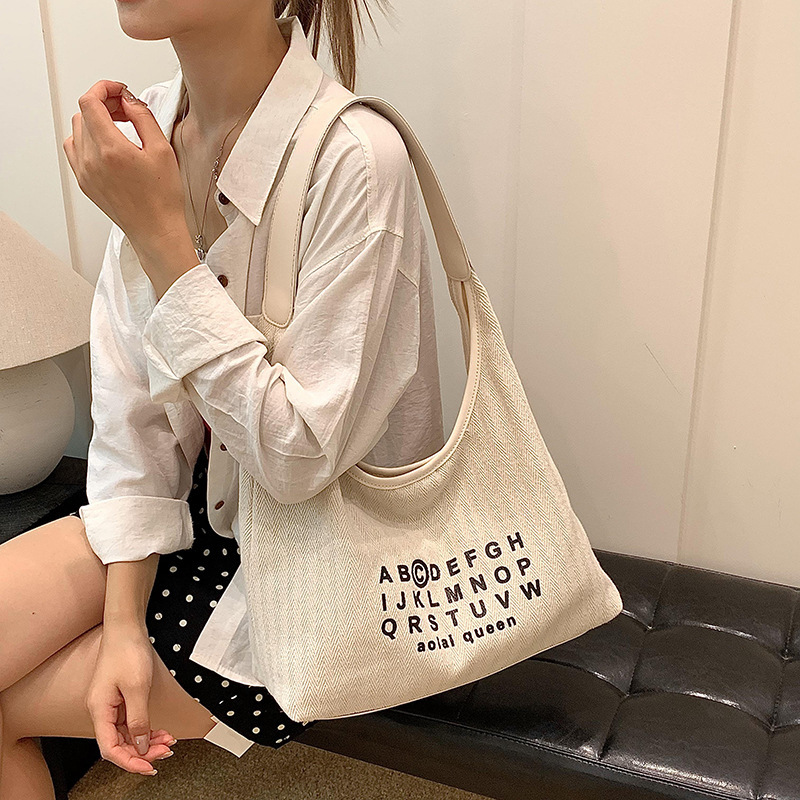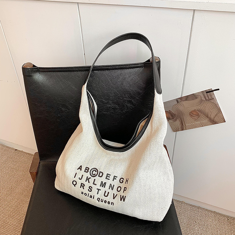 字母帆布包包女夏天新款潮韩国小众托特包休闲大容量购物袋包
