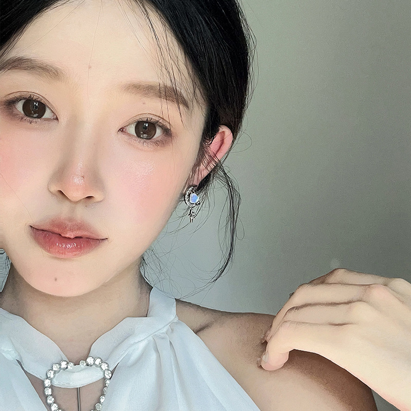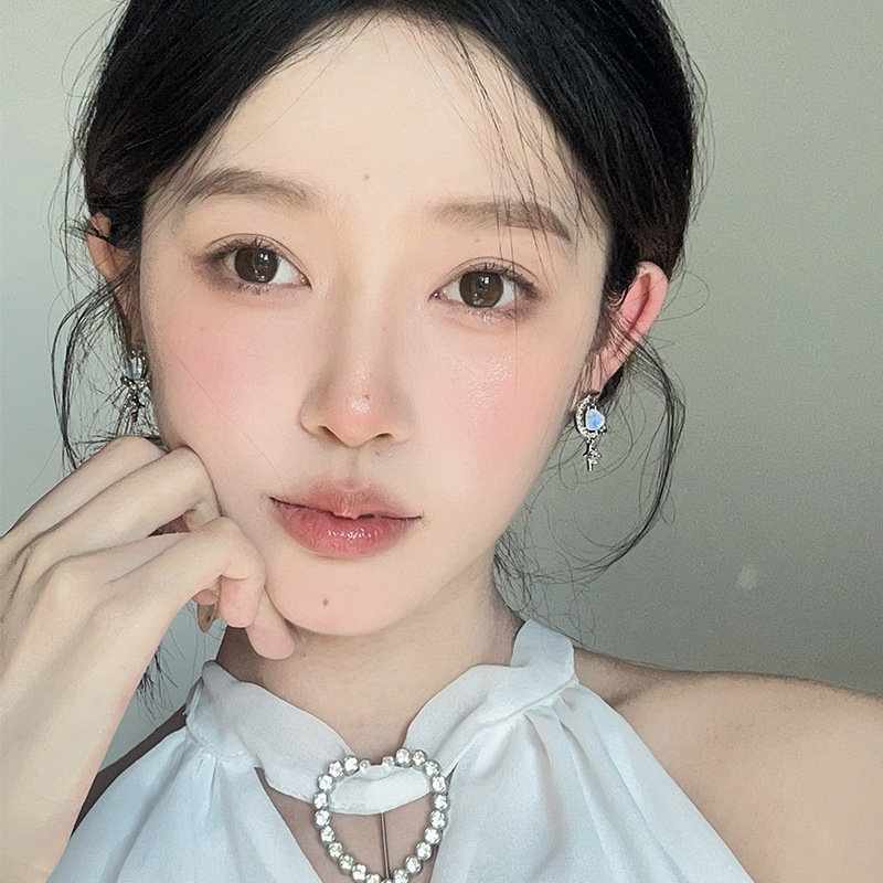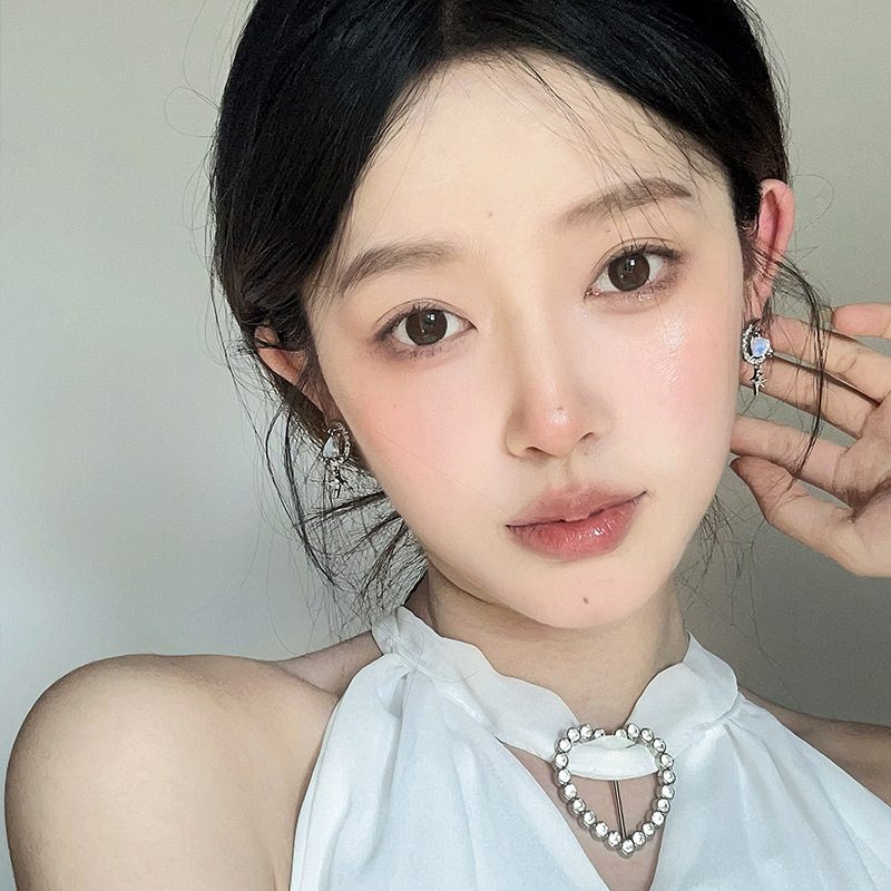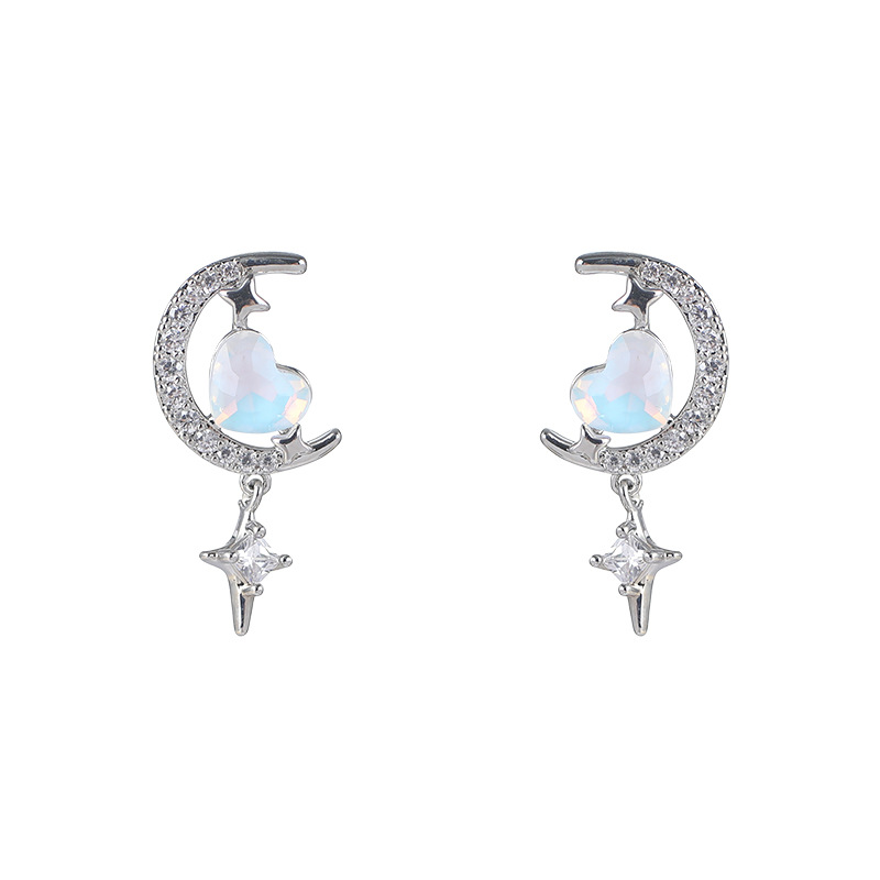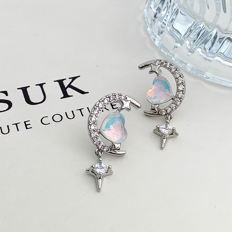 甜美气质星月爱心耳钉小众设计高级感锆石耳环年新款百搭耳饰