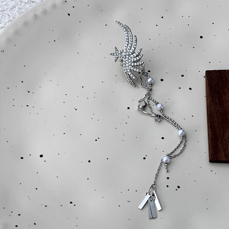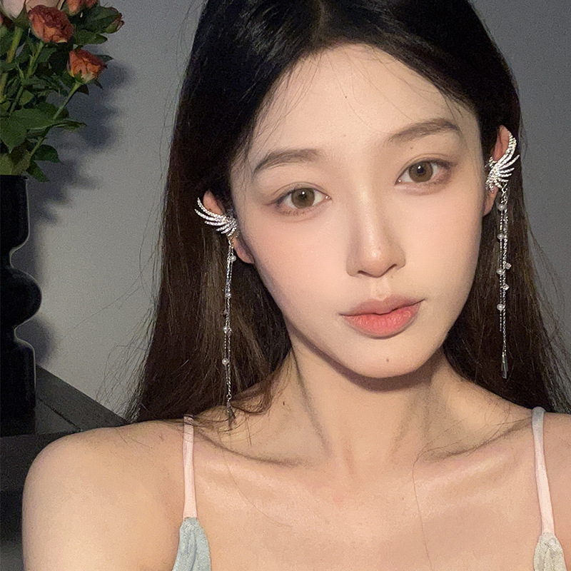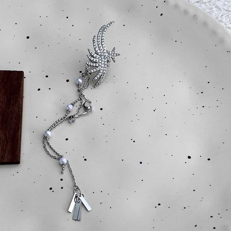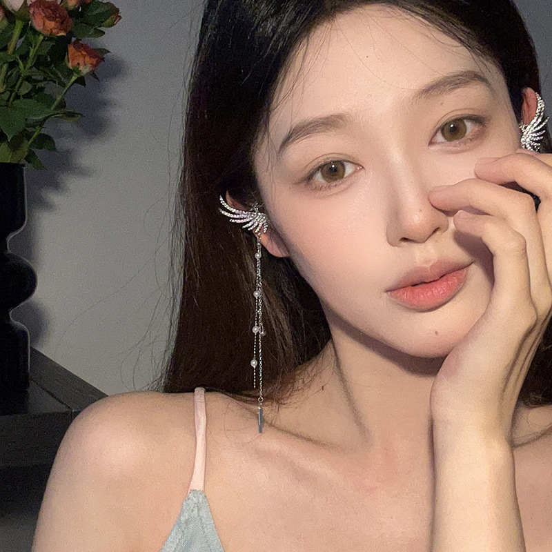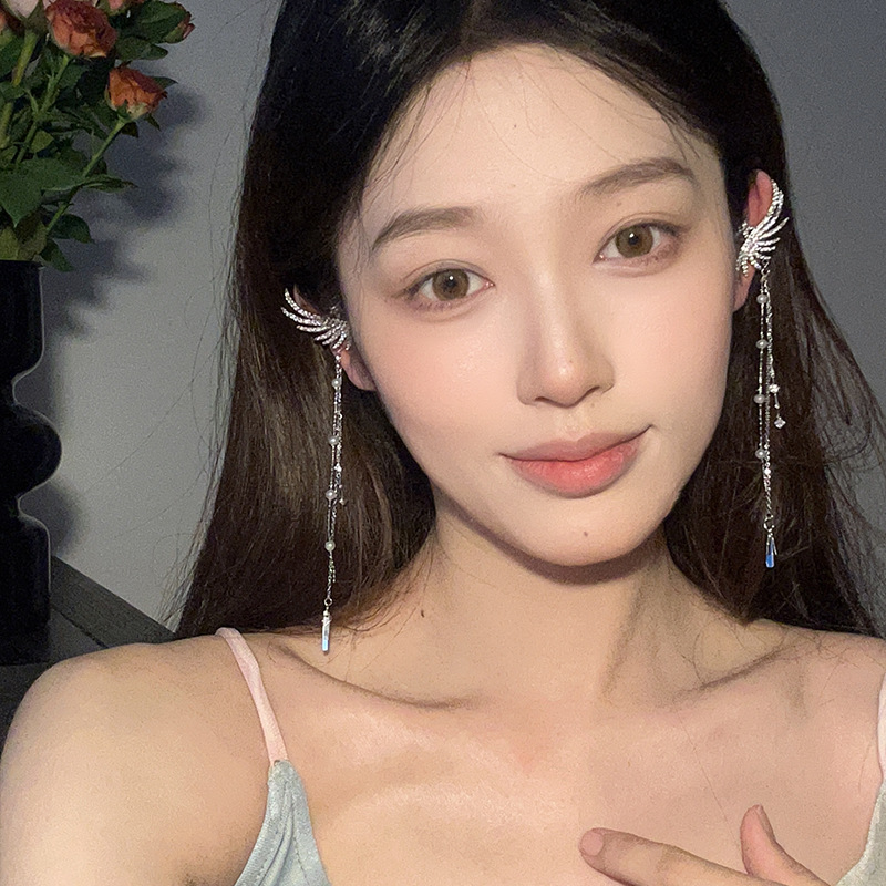 重工高级感锆石翅膀星星长款流苏耳骨夹小众气质轻奢无耳洞耳饰女