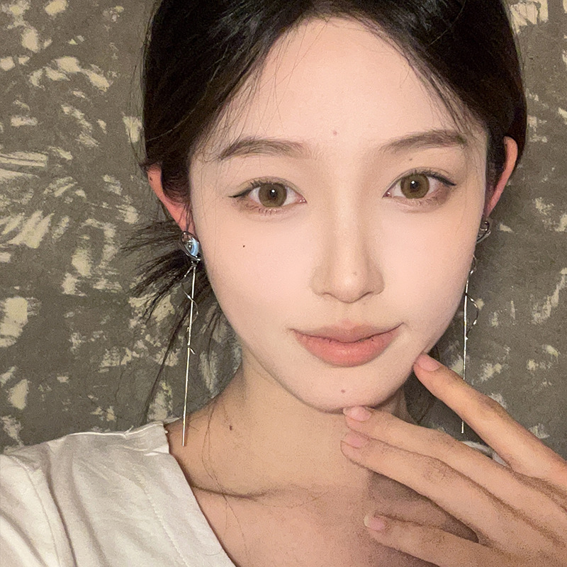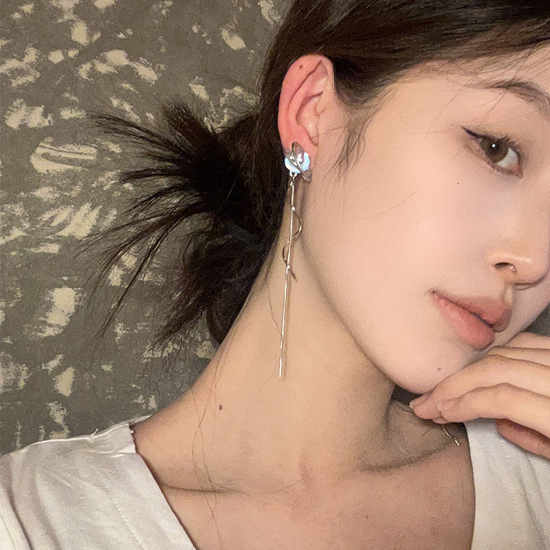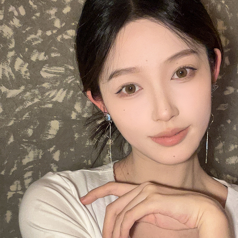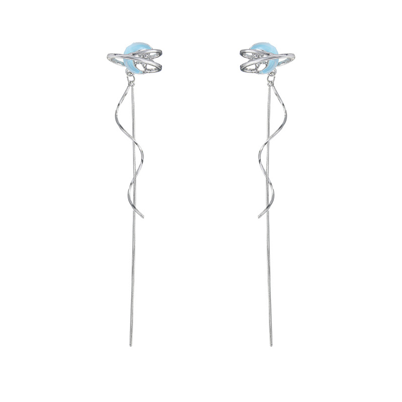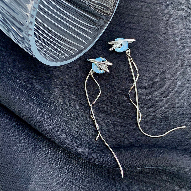 气质仙气蓝色月亮流苏耳环女小众设计感高级感耳钉百搭清冷感耳饰