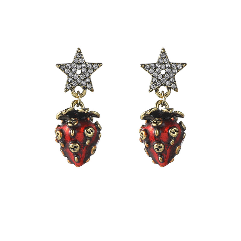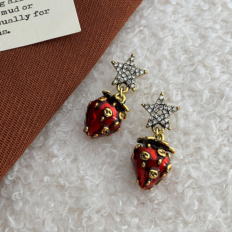 复古甜酷草莓星星耳环女气质高级感珐琅耳钉年新款冷淡风耳饰