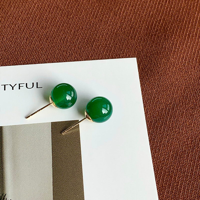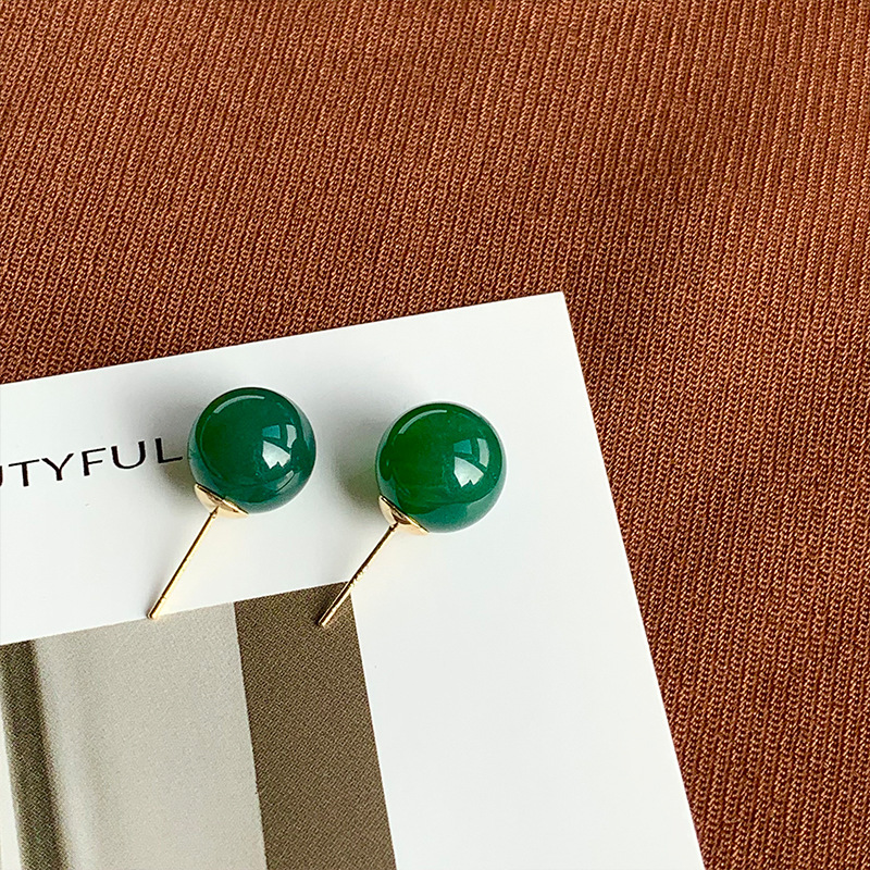 新中式复古绿色圆珠耳钉女气质小众高级感耳环年新款国风耳饰
