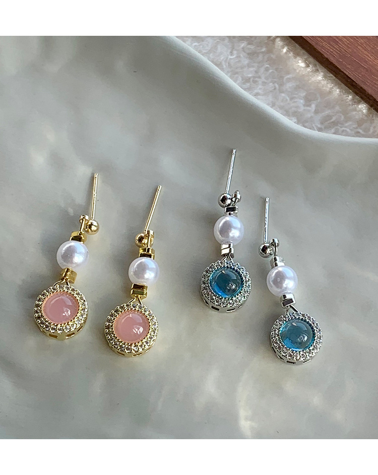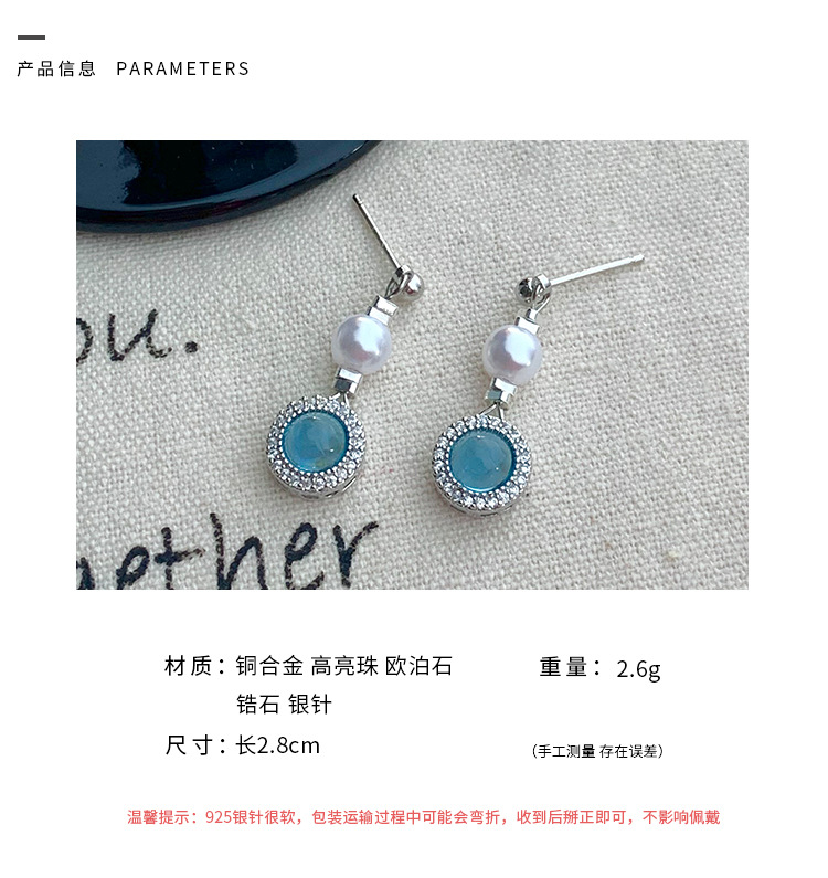 海蓝宝珍珠耳环女小众轻奢气质高级感耳钉年春夏新款百搭耳饰