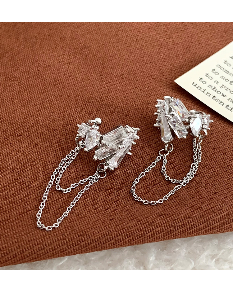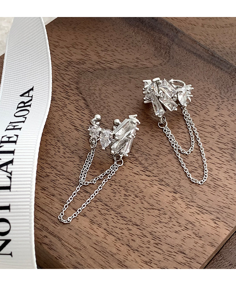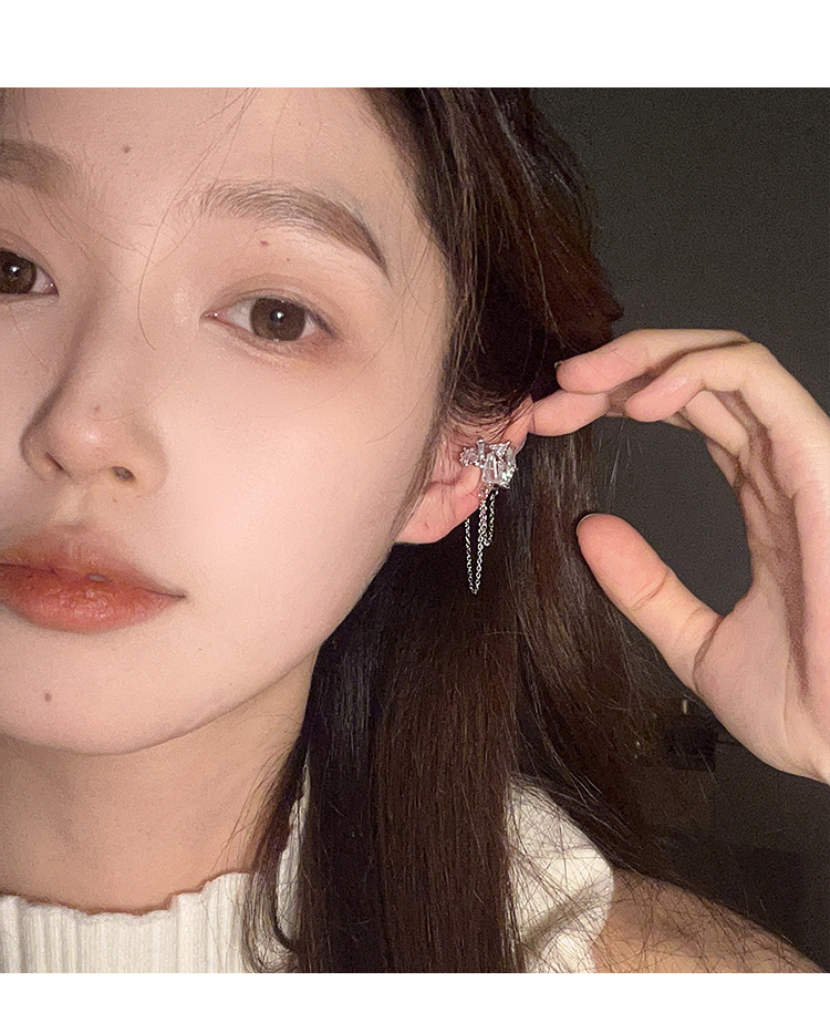 小众设计感锆石拼接流苏耳骨夹女气质冷淡风独特耳夹无耳洞耳饰潮