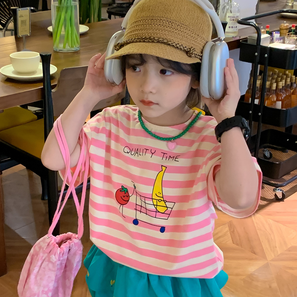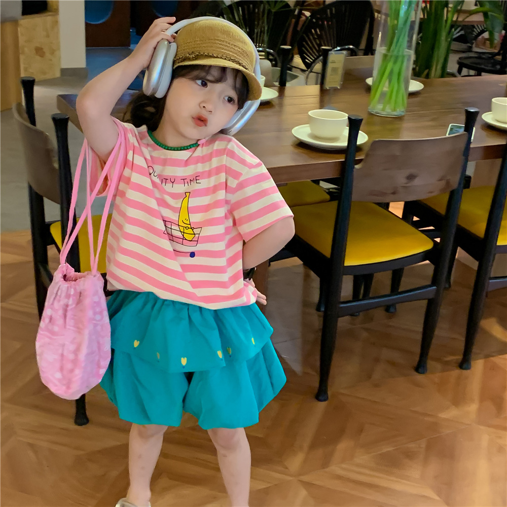 夏季新款童装 女童条纹卡通洋气套装韩版儿童香蕉短袖两件套
