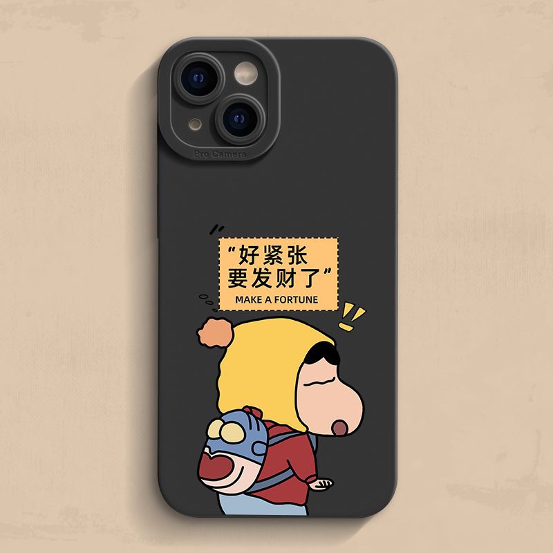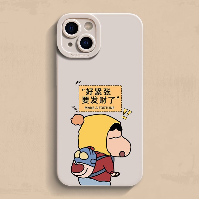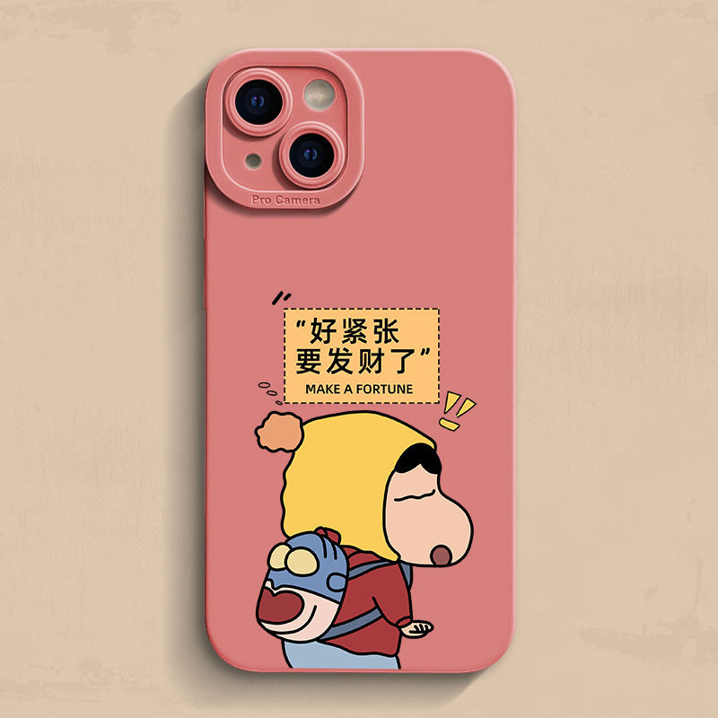 苹果14Plus手机壳发财小新iPhone13pro卡通11/12网红全包防摔x/xr