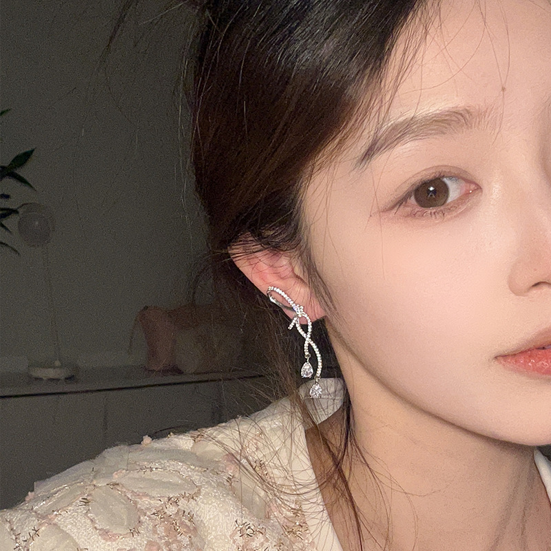 轻奢高级感满钻蝴蝶结流苏耳环气质小众设计长款耳坠新款耳饰