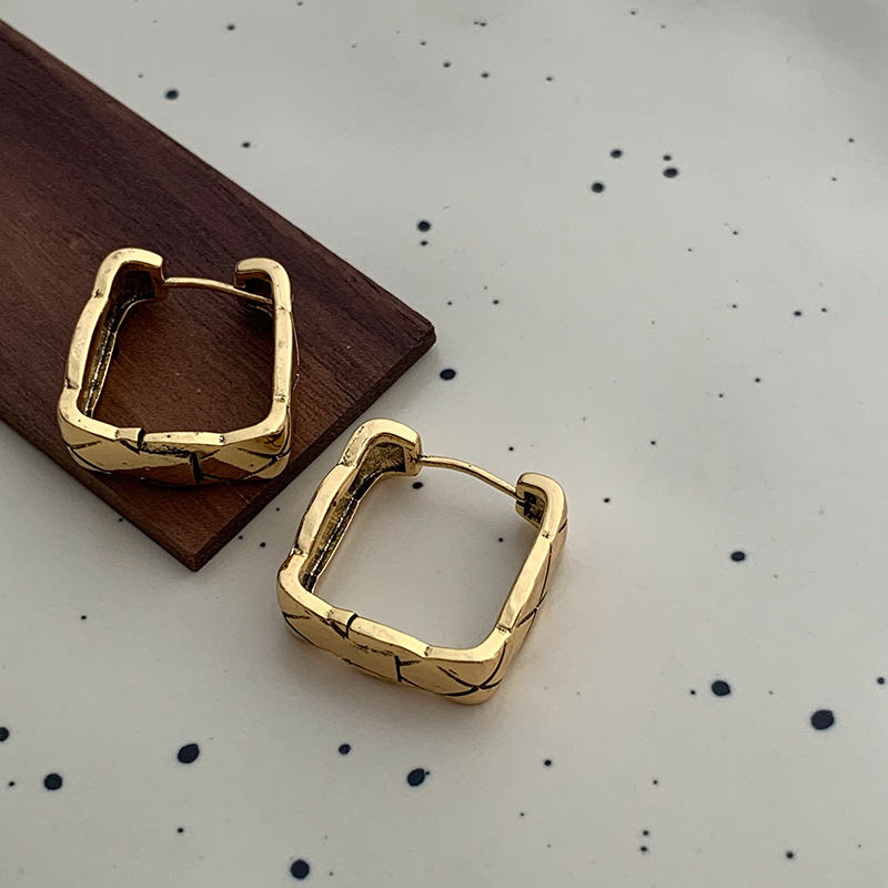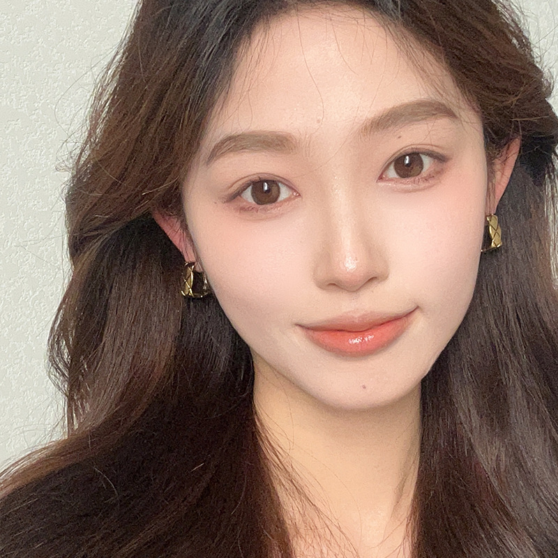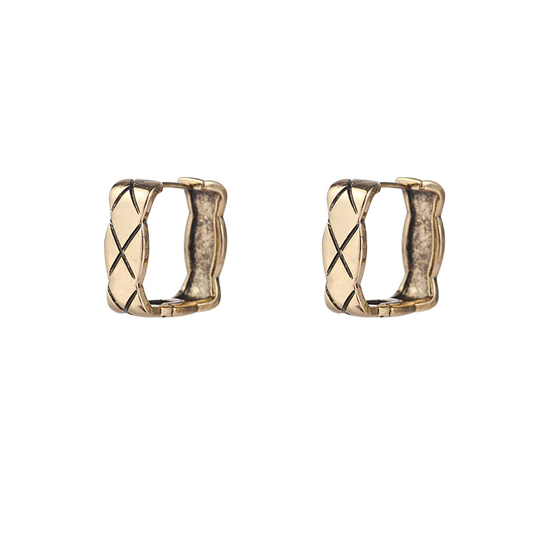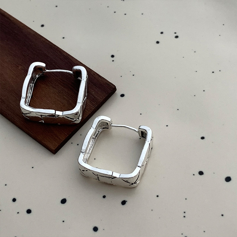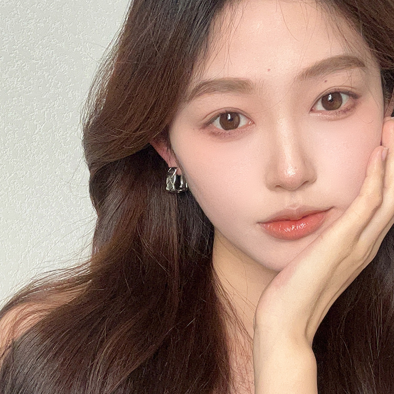 复古金属肌理感菱格耳环女小众设计感简约方形耳钉冷淡风百搭耳饰