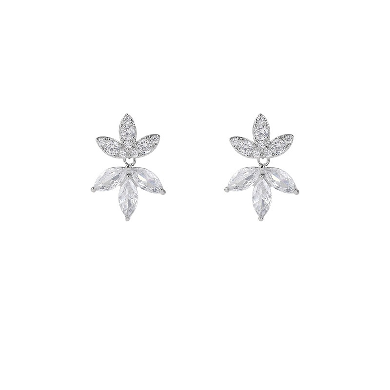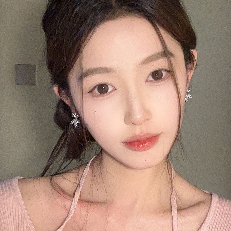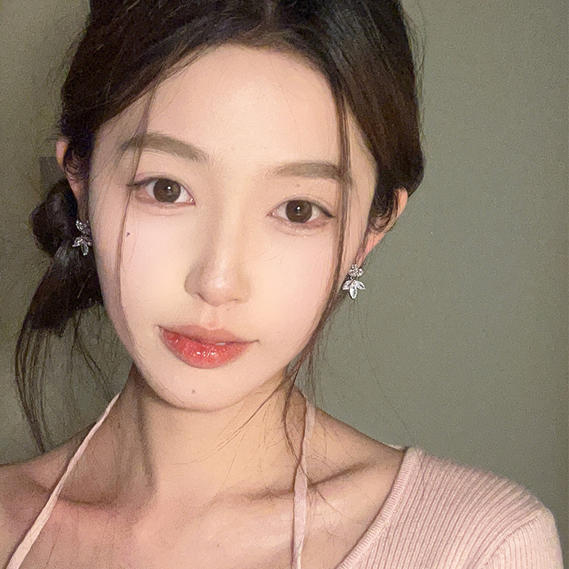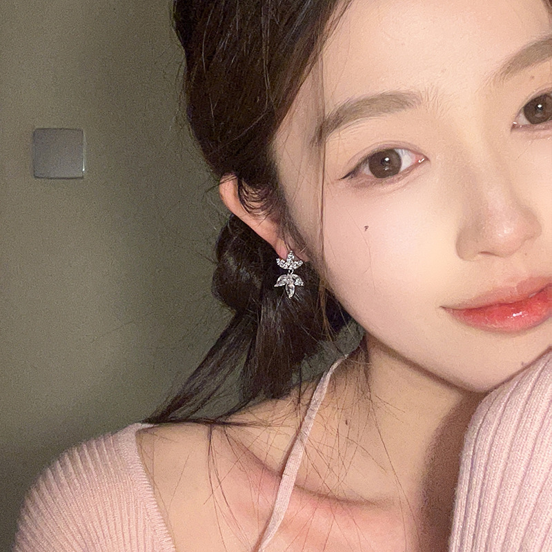 气质轻奢超闪锆石树叶耳环小众高级感简约百搭耳环年春夏新款
