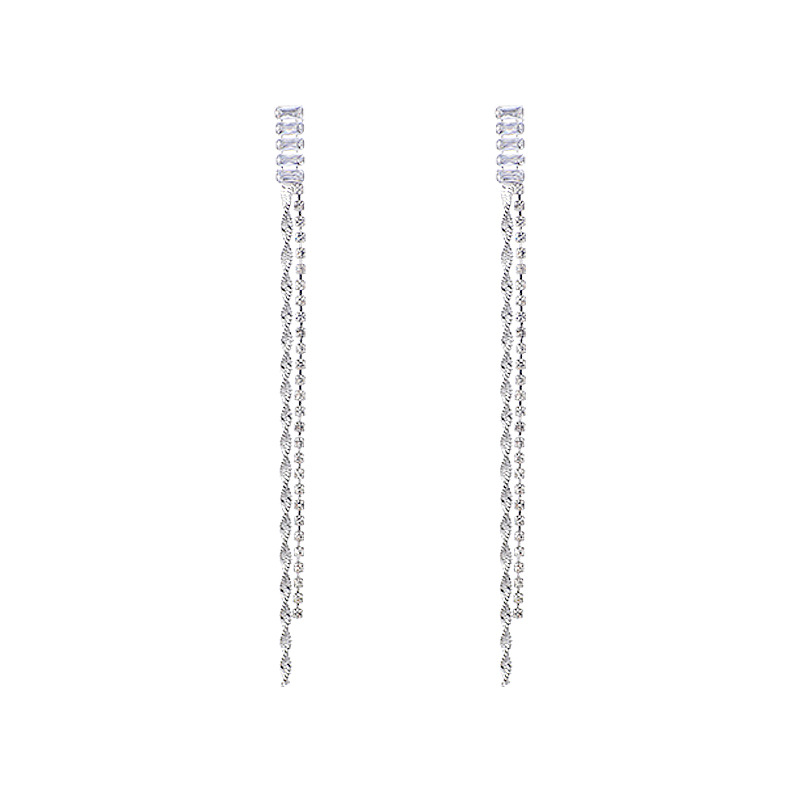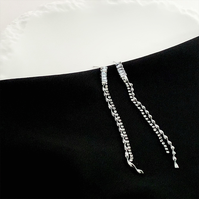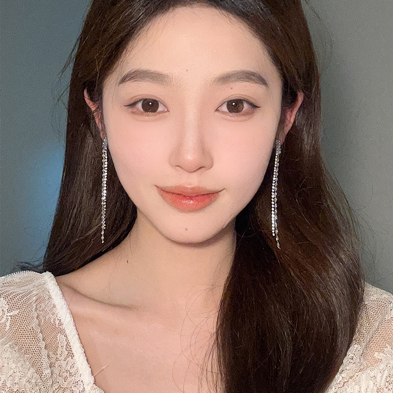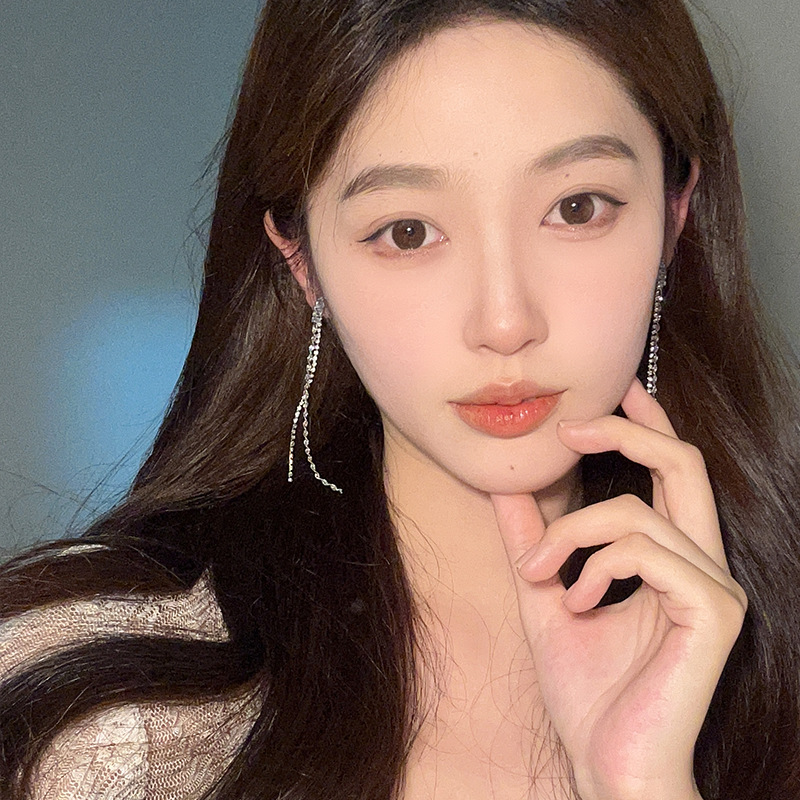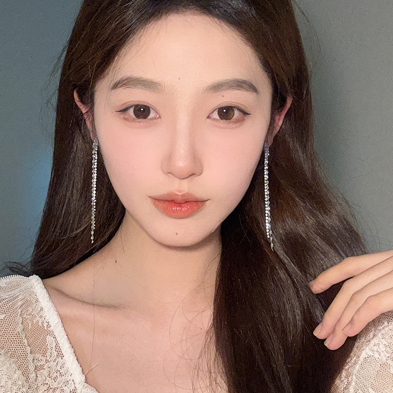 气质轻奢高级感锆石流苏耳环极简风小众设计感满钻长款显脸瘦耳饰