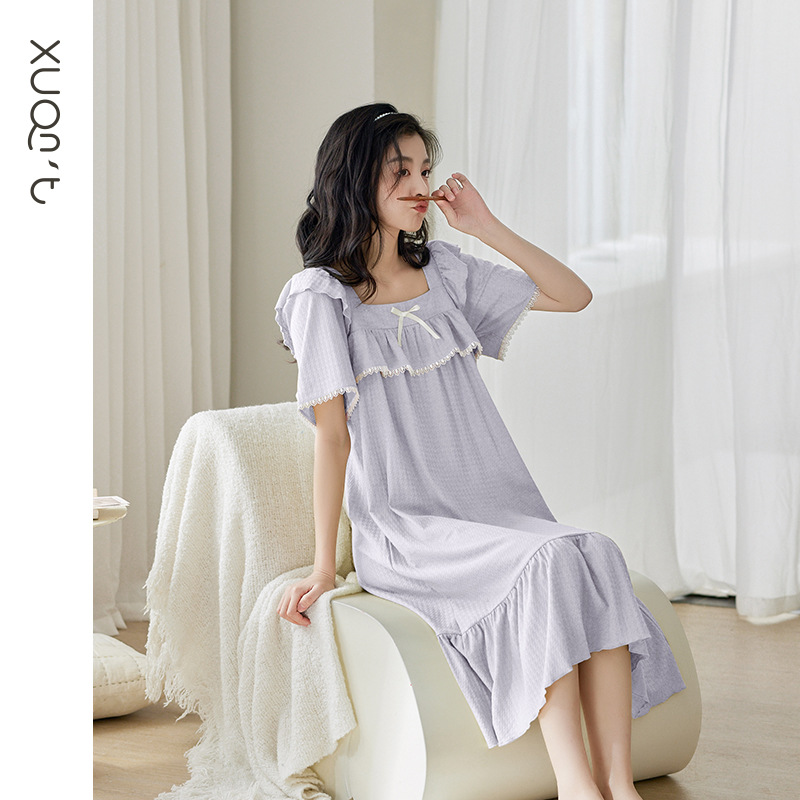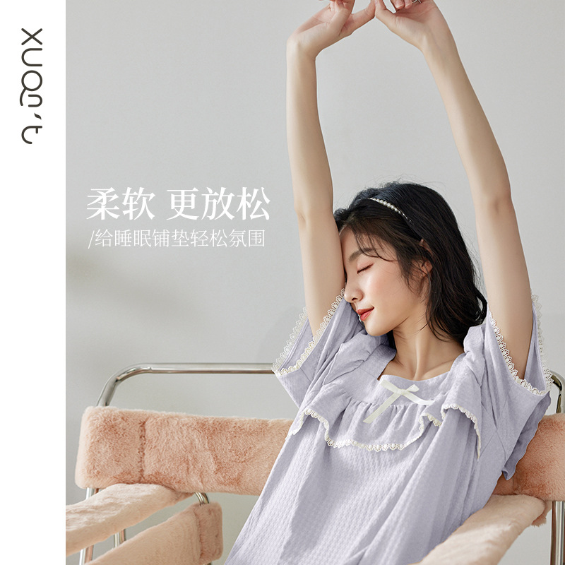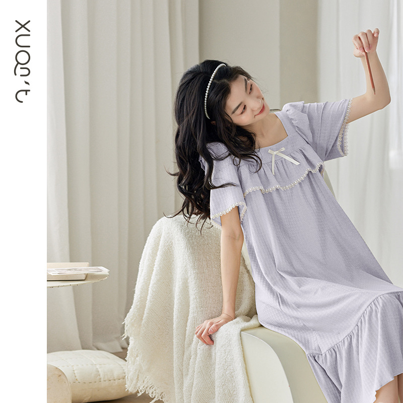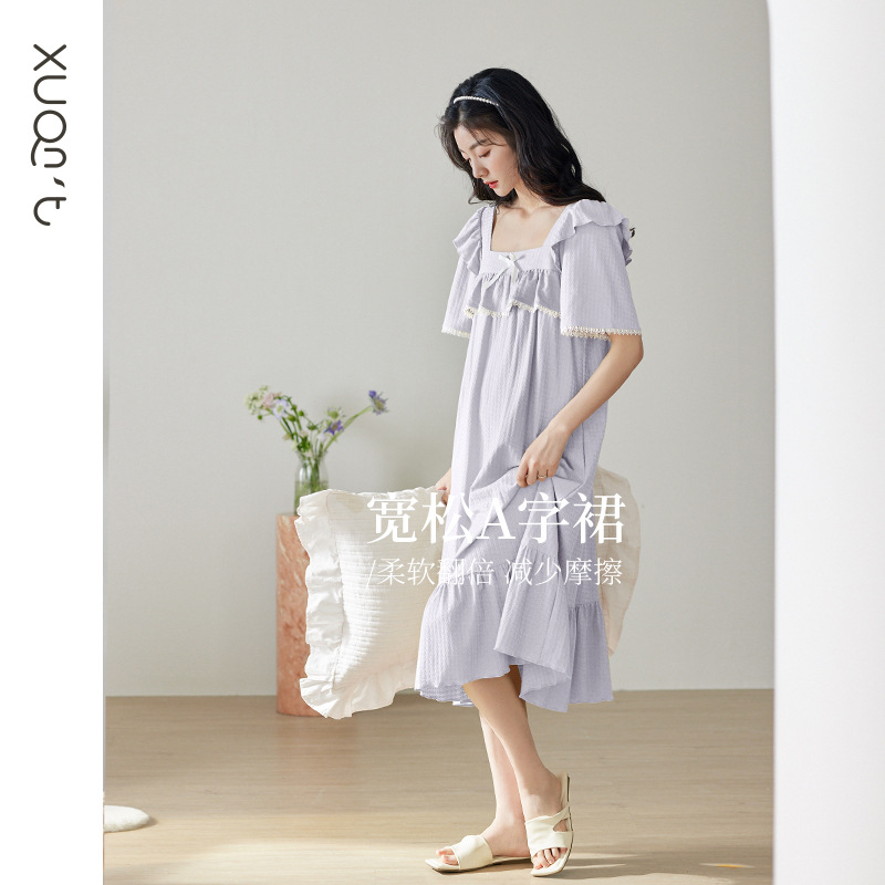 【防凸点】睡裙女夏季纯棉短袖薄款甜美公主风少女长款睡衣连衣裙