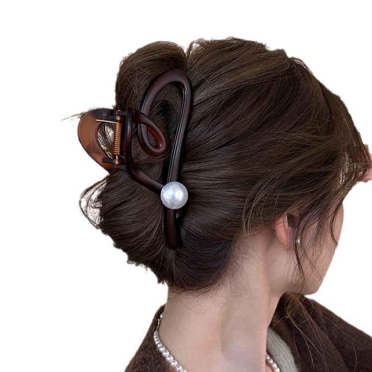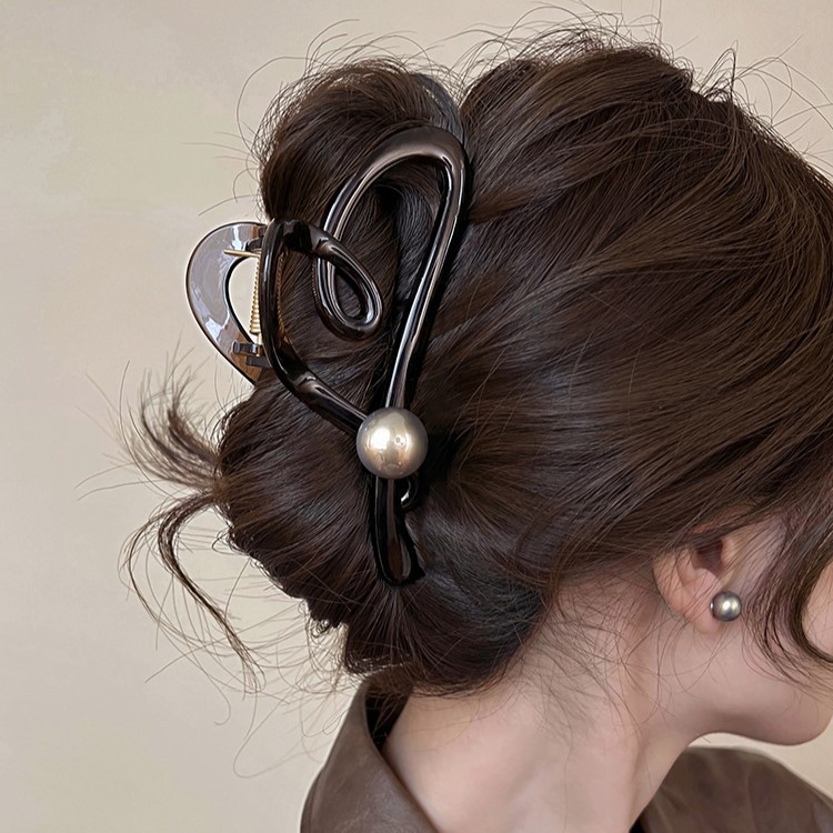 高级感气质镂空爱心珍珠发夹女高级感大号抓夹后脑勺鲨鱼夹子发卡