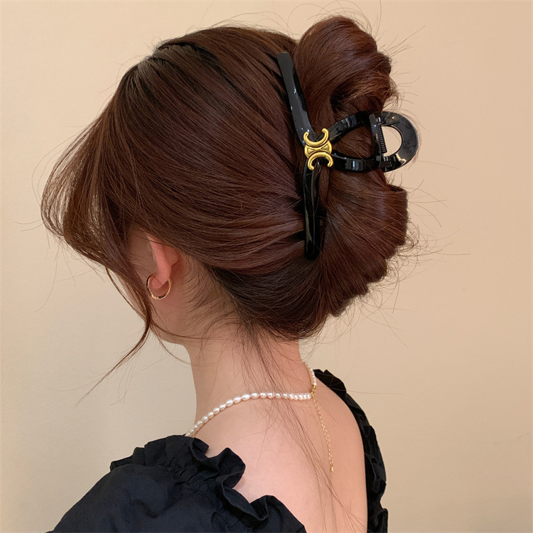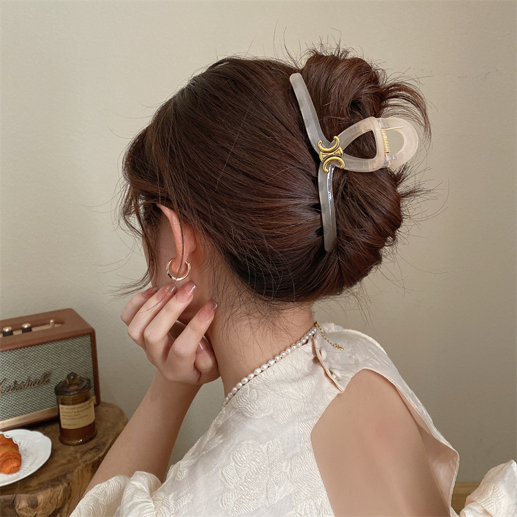 高级感鲨鱼夹发卡复古轻奢字母大号抓夹百搭发夹女后脑勺夹子头饰