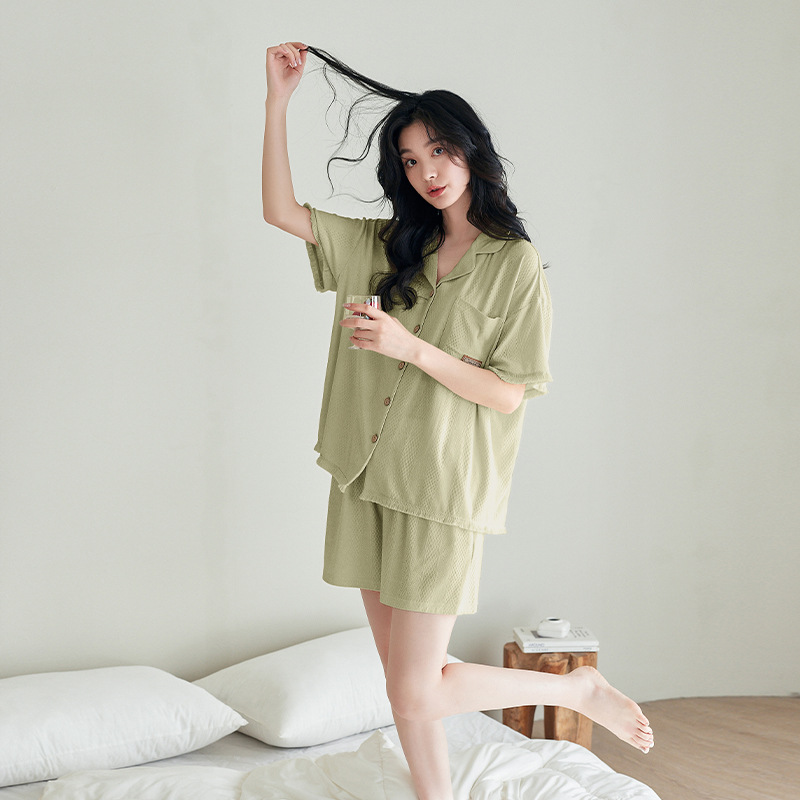 【凉感型】夏天睡衣女款莫代尔短袖短裤清新绿色时尚家居服两件套
