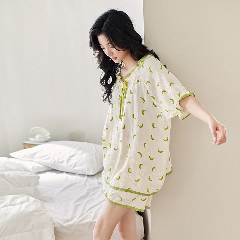 【凉感型】睡衣女夏款纯棉纱布短袖甜美可外穿梭织棉家居服两件套