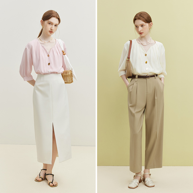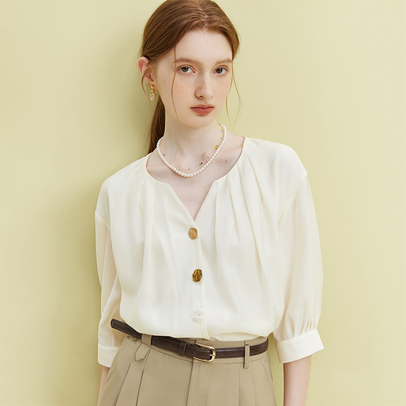 法式宽松短袖衬衫女夏季新款慵懒风V领上衣