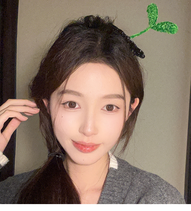 毛线针织立体小草豆芽发夹可爱创意搞怪发卡bb夹少女趣味发饰配饰