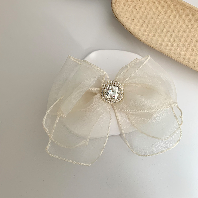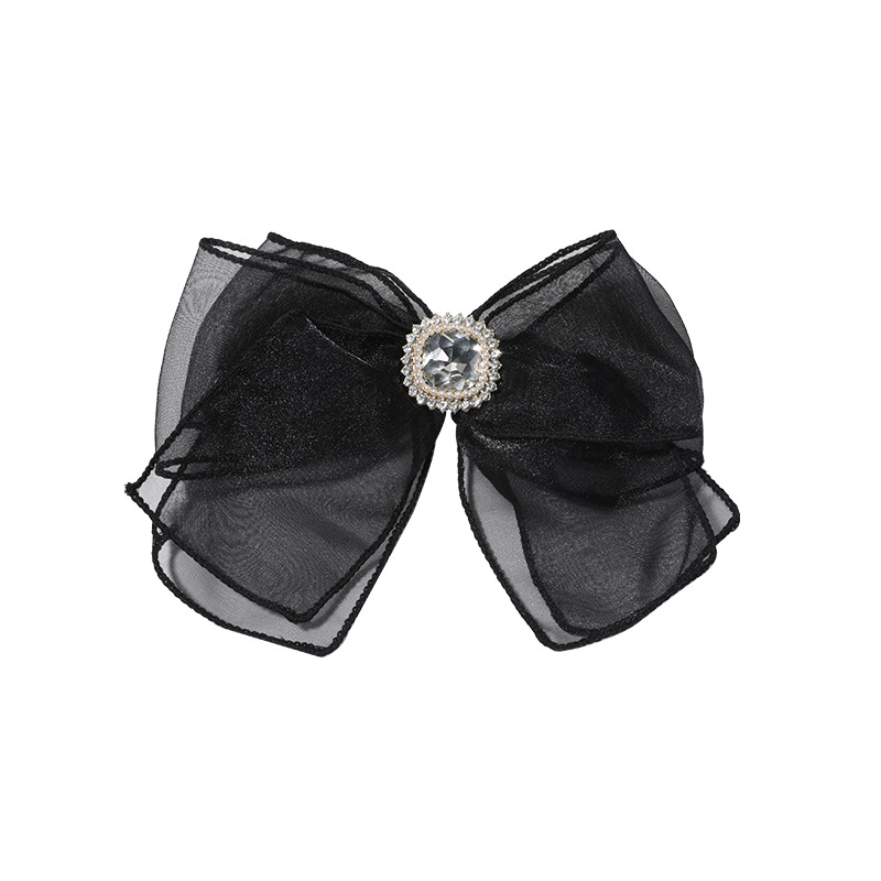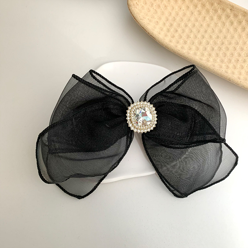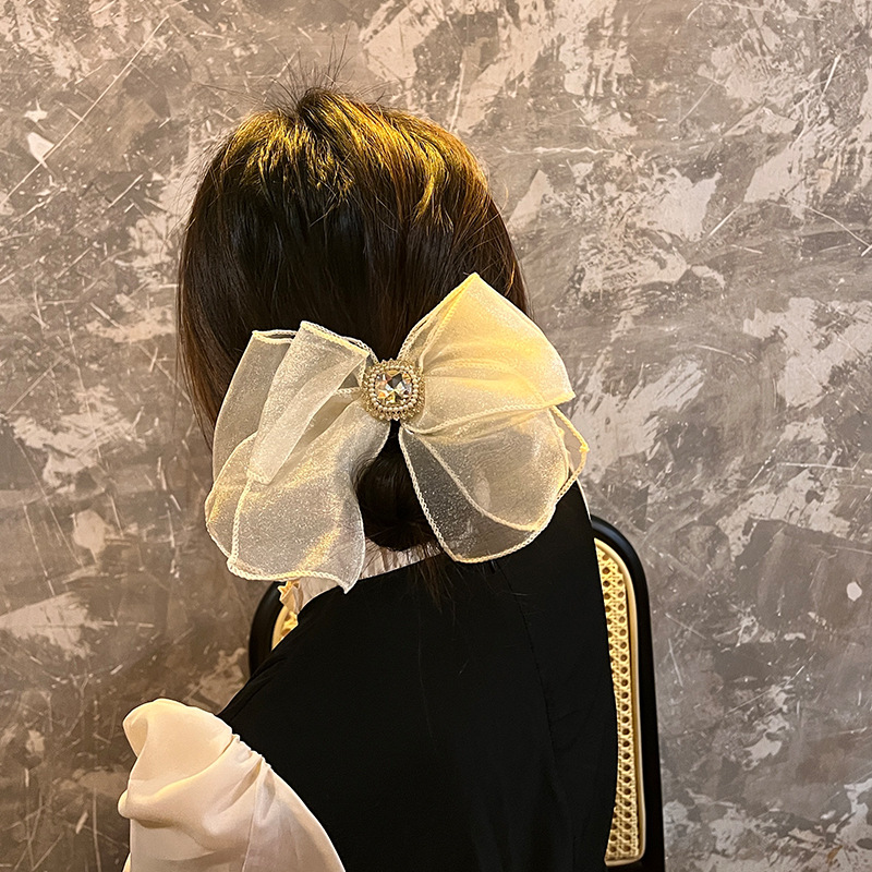 气质优雅网纱闪钻蝴蝶结发夹女后脑勺顶夹弹簧夹发卡子夹子发饰