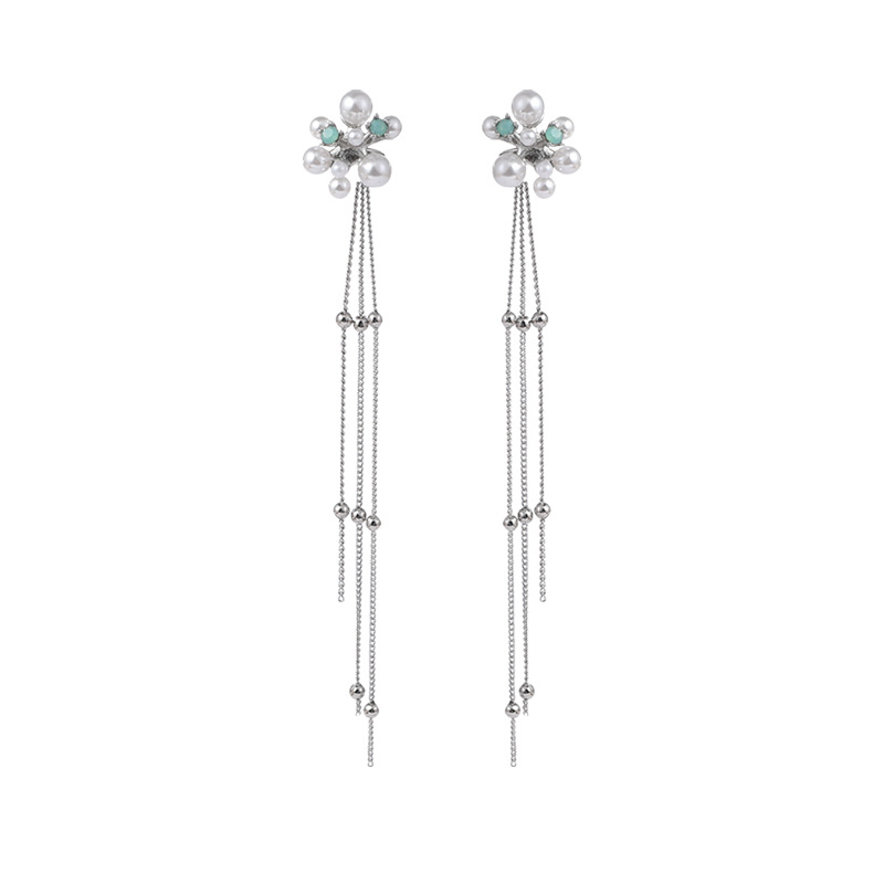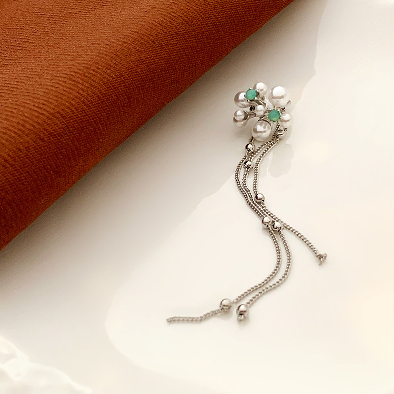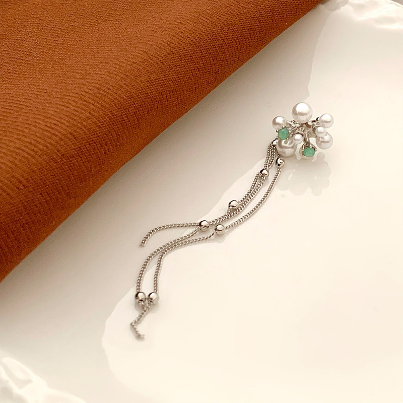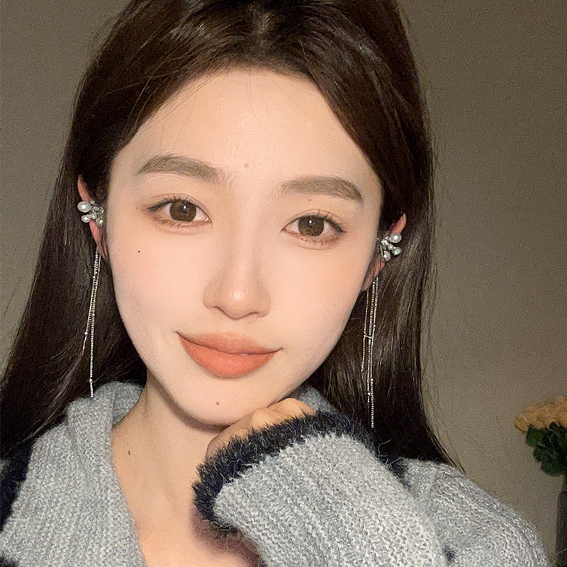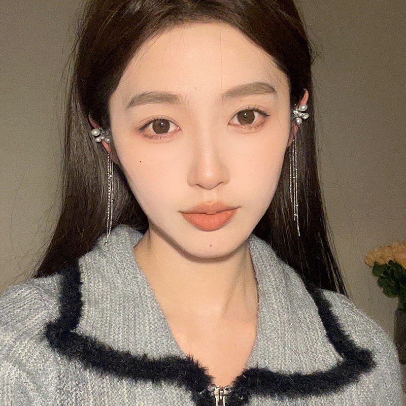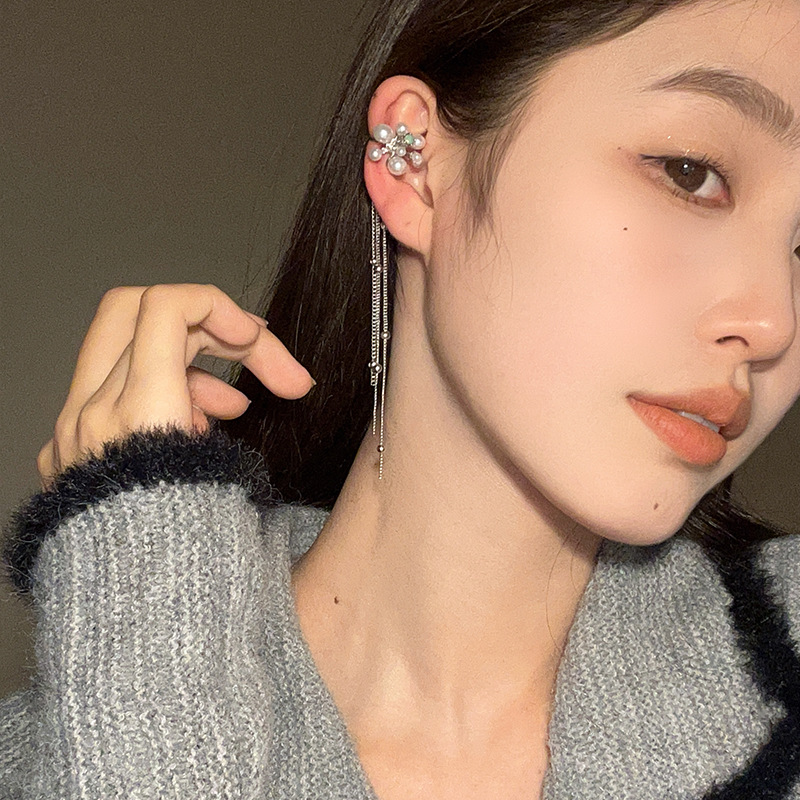 温柔珍珠花朵流苏耳骨夹小众冷淡风长款无耳洞耳夹气质烟花耳饰