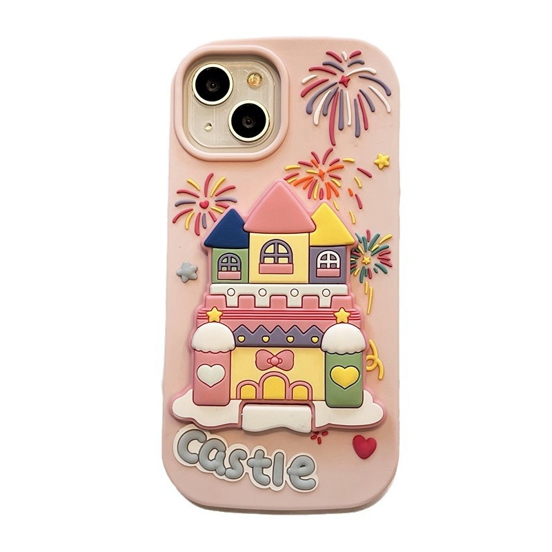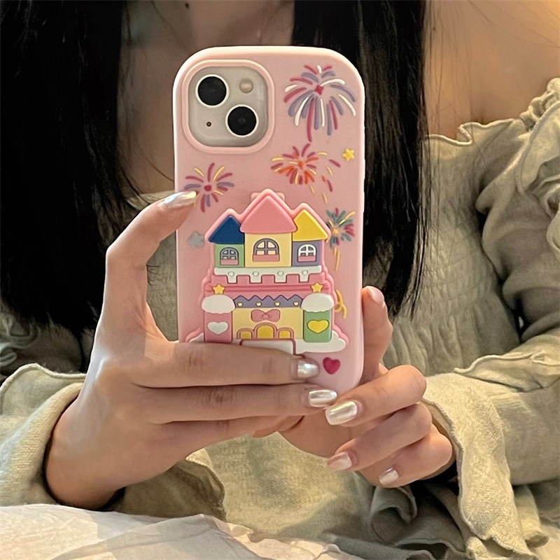 立体烟花城堡翻盖镜子适用iphone15Promax苹果14手机壳13女12软11