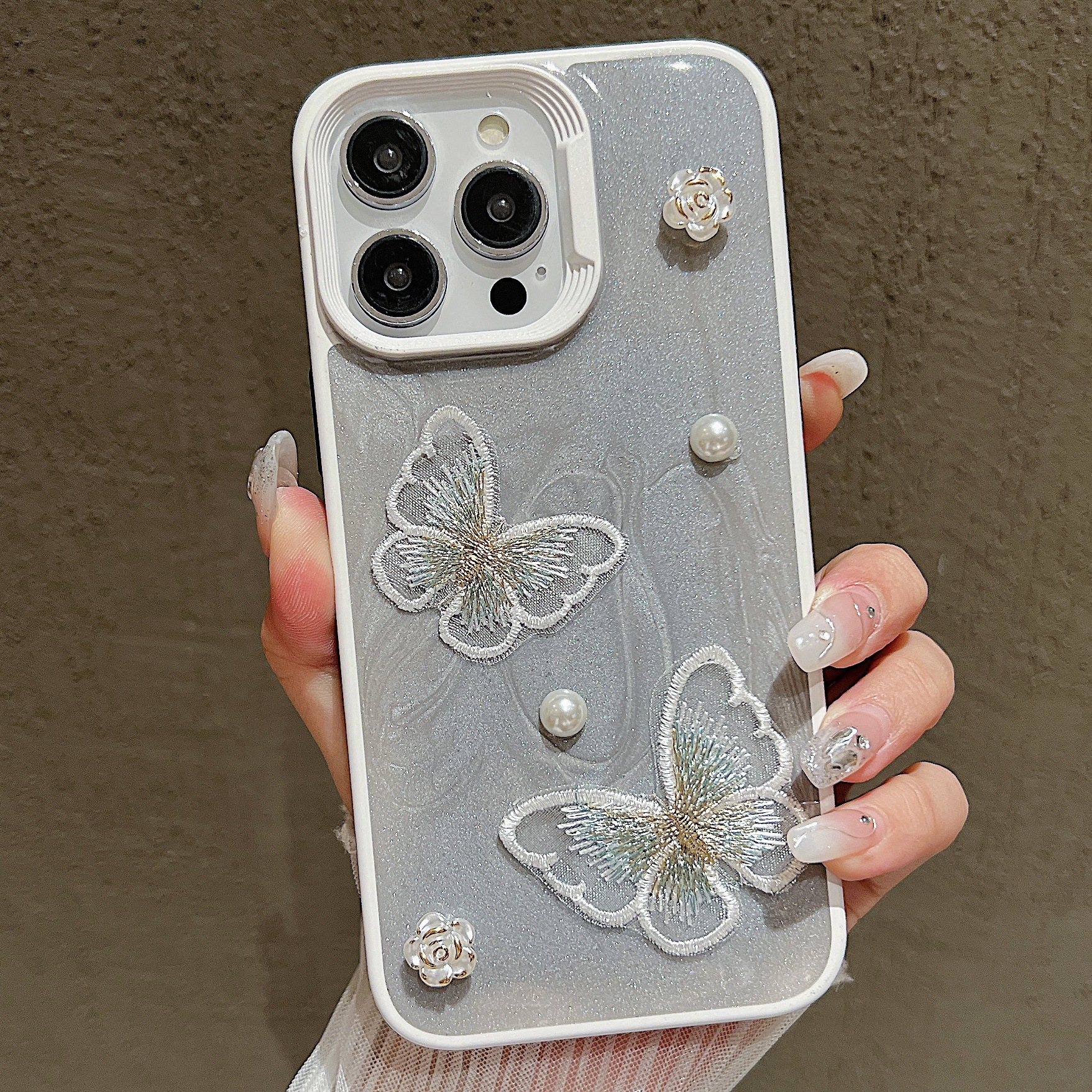 ins高闪刺绣蝴蝶适用华为 Mate60Prox手机壳荣耀90立体NOVA12滴胶