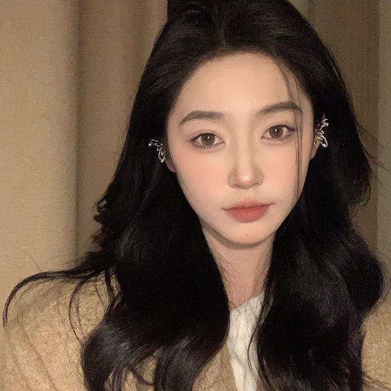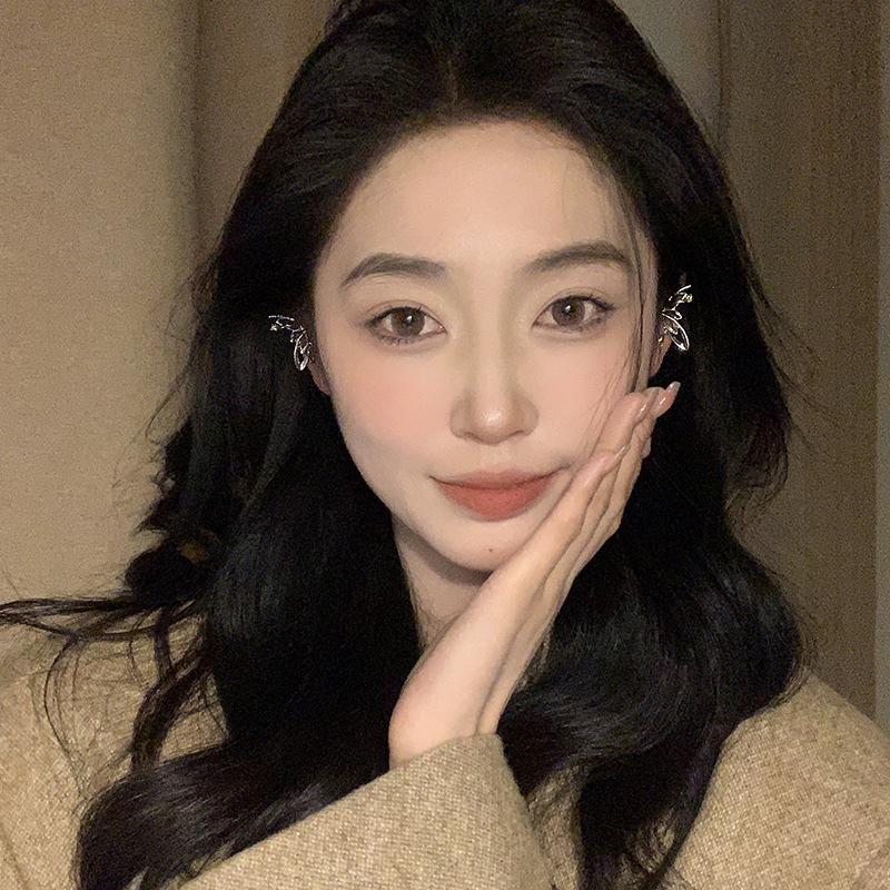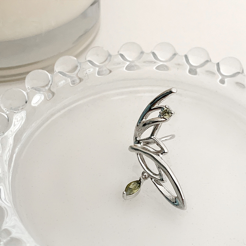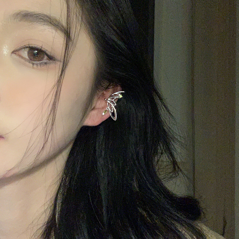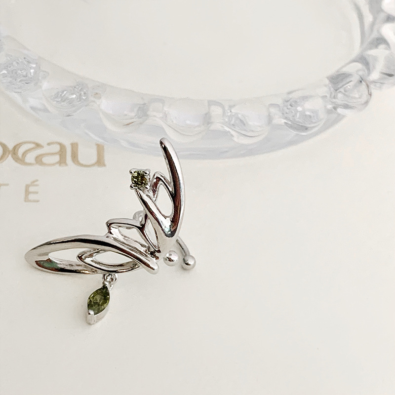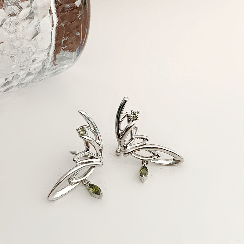 超仙气质绿色锆石蝴蝶翅膀耳夹女无耳洞小众设计感耳骨夹精灵耳饰