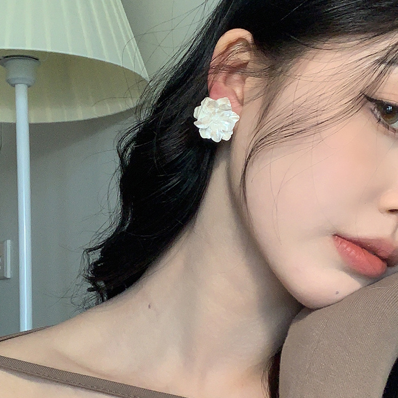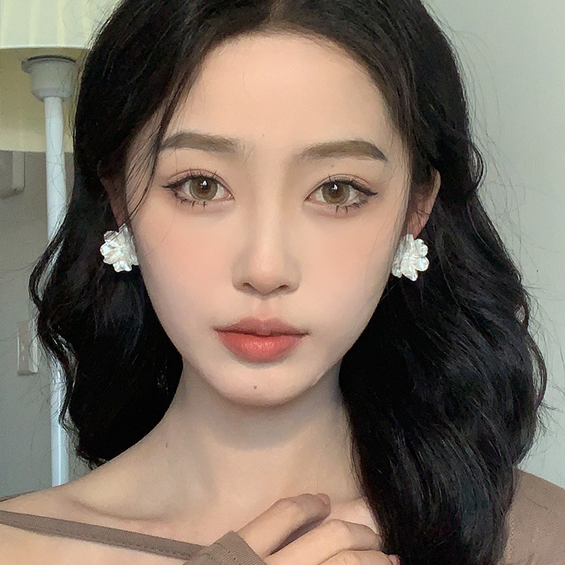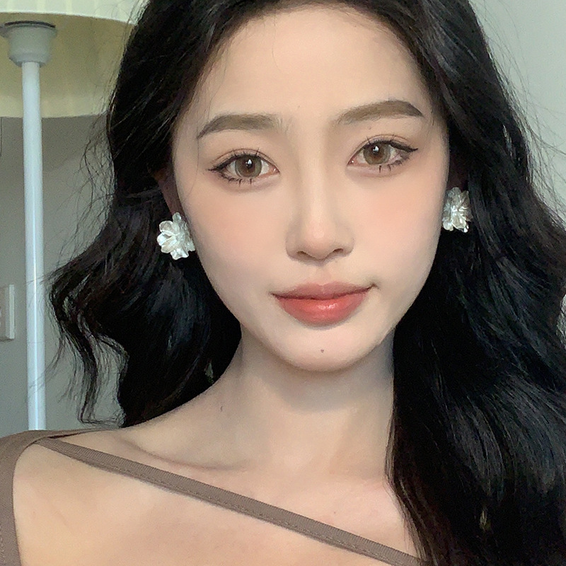 春夏新款气质超仙白色花朵耳环女高级感法式优雅耳钉耳饰小众配饰