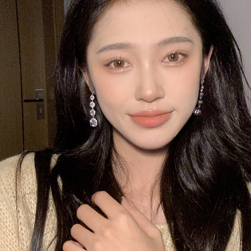气质高级感水晶锆石耳坠小众设计感超闪耳环长款显脸瘦耳钉耳饰品