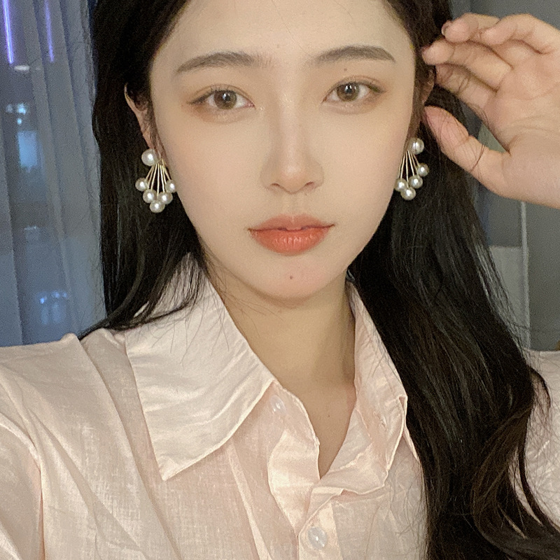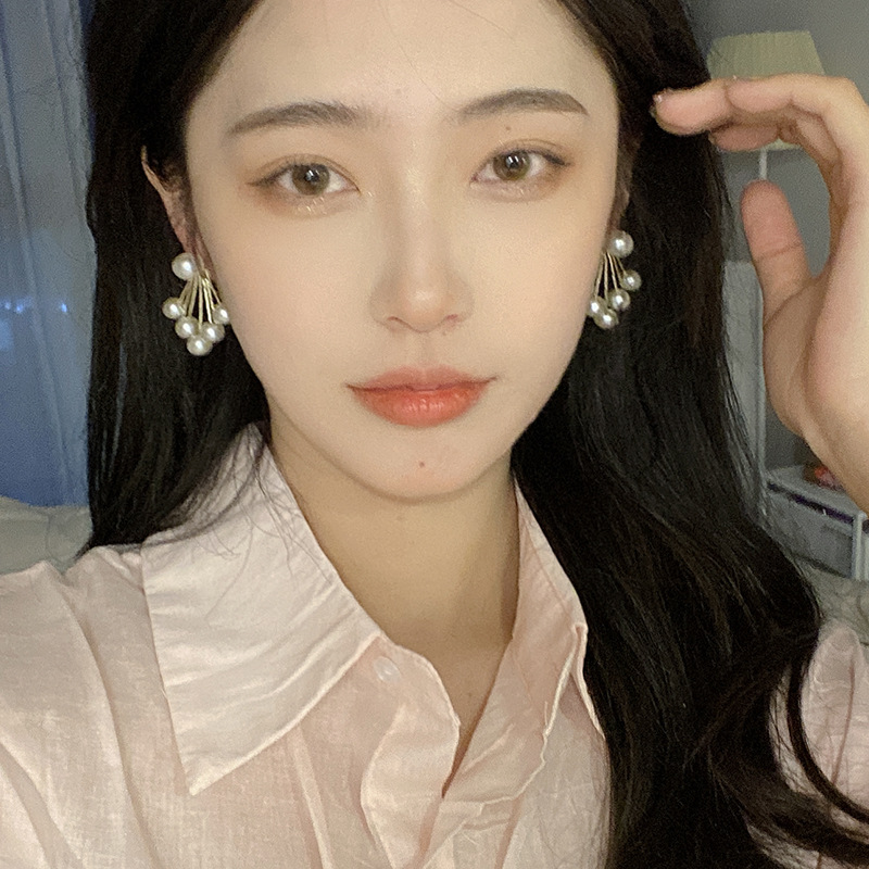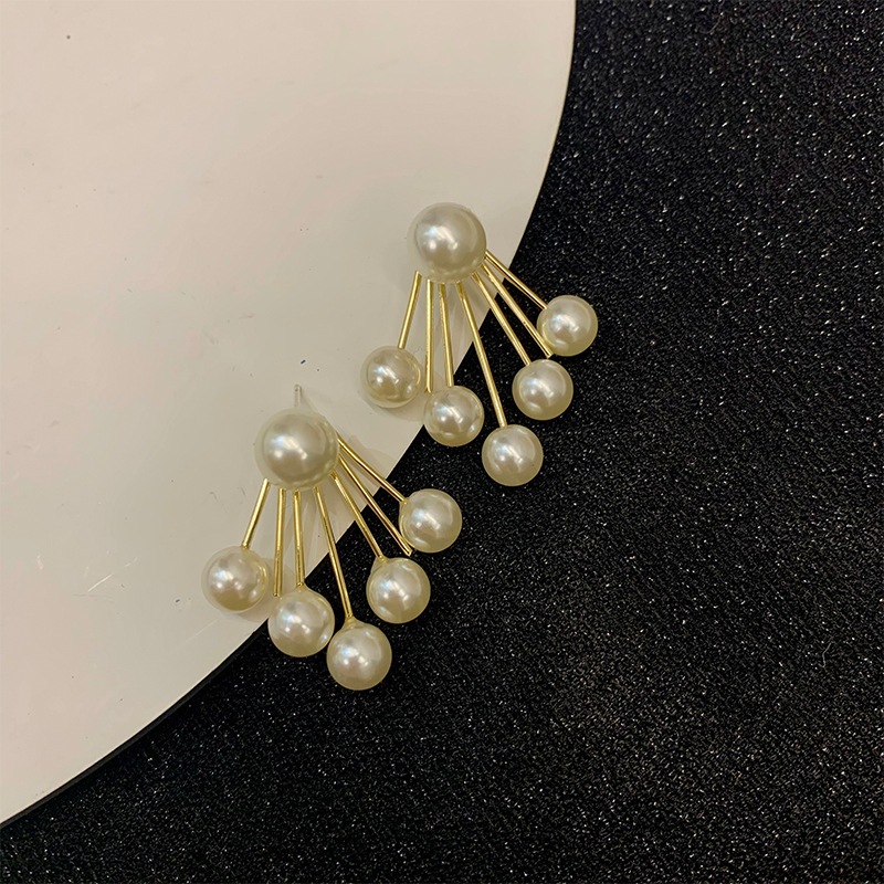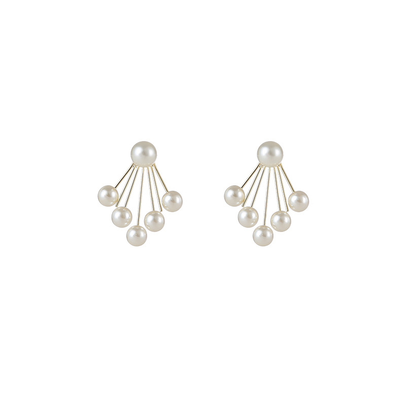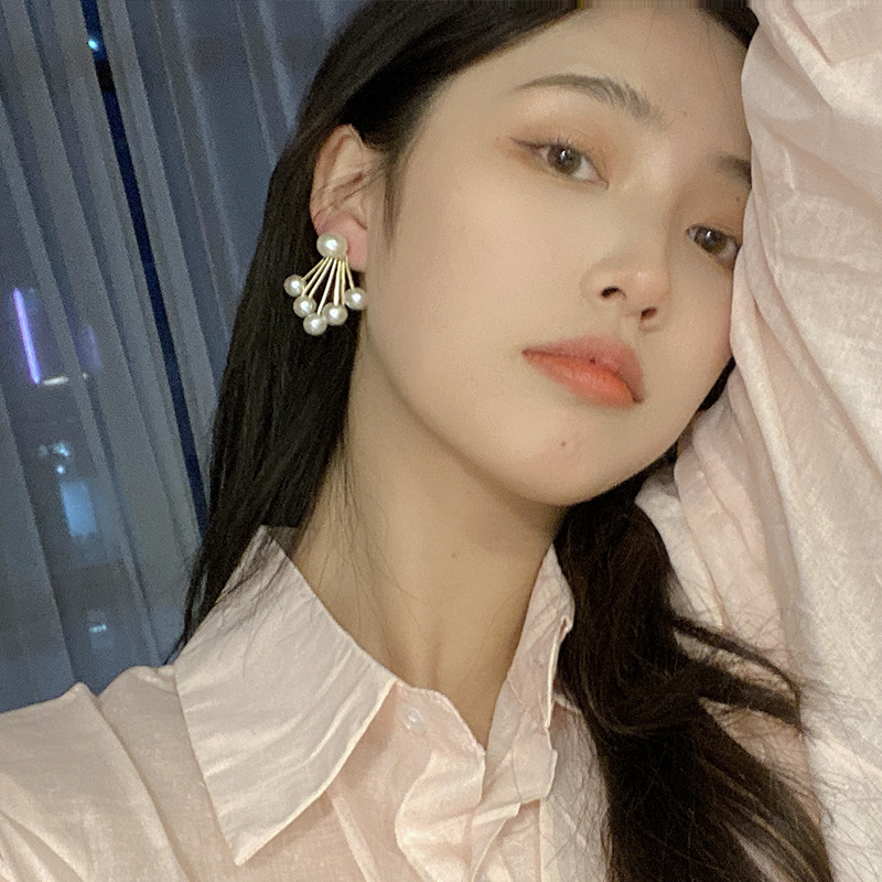 ins个性设计感扇形后挂式珍珠耳环 日韩网红简约百搭气质耳钉耳饰