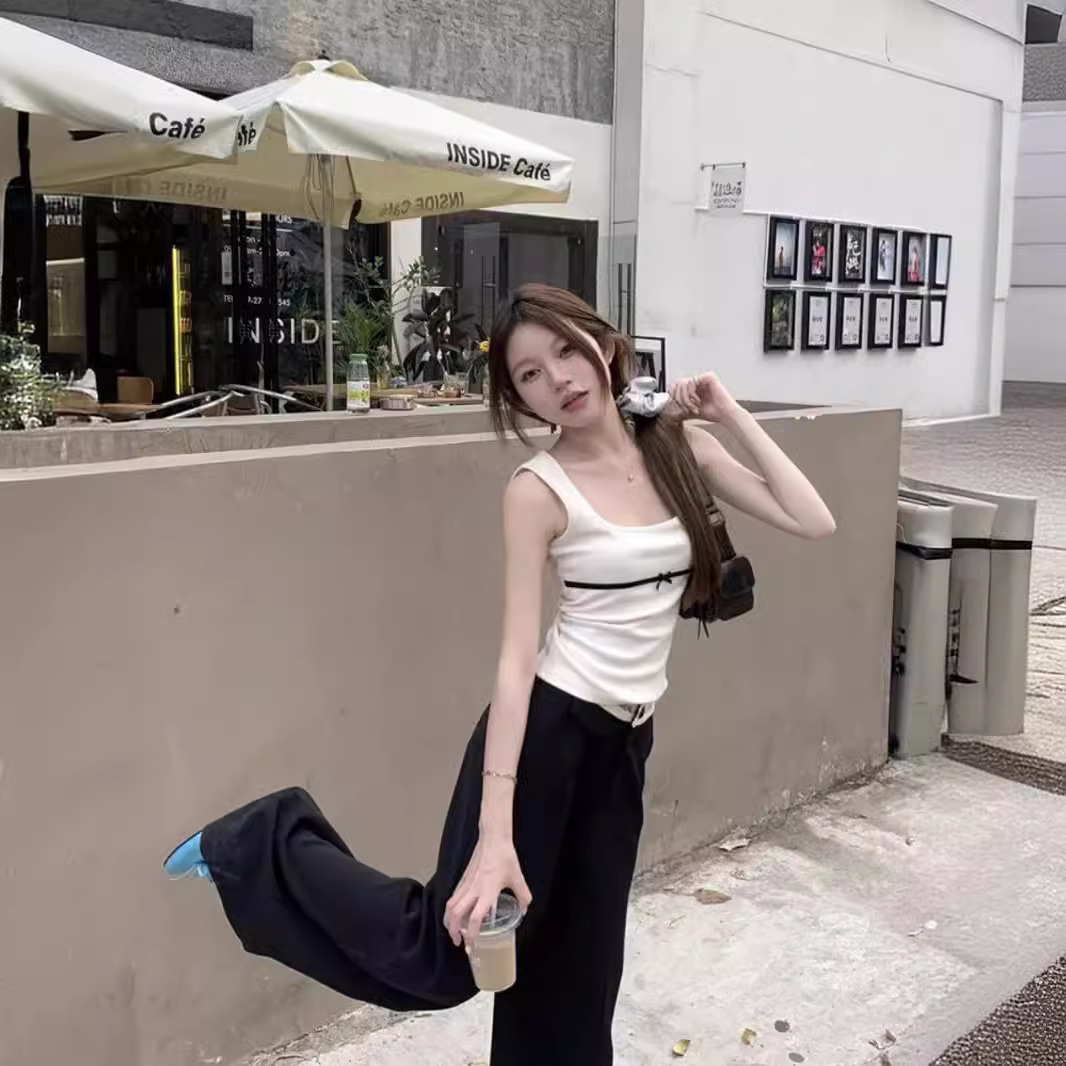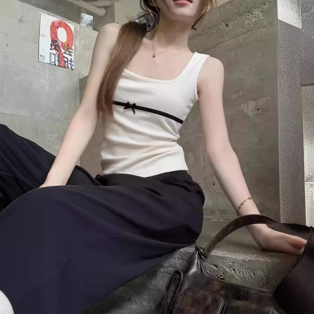 辣妹白色小吊带背心女外穿夏季设计感蝴蝶结修身内搭短款无袖上衣
