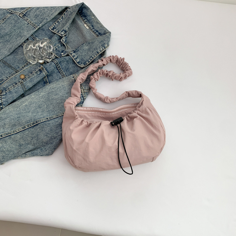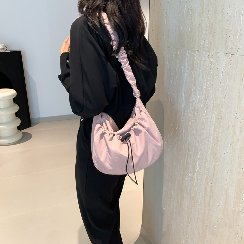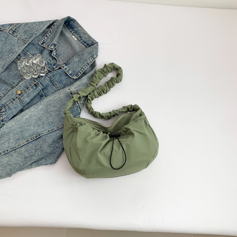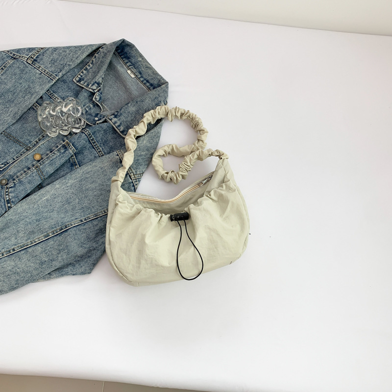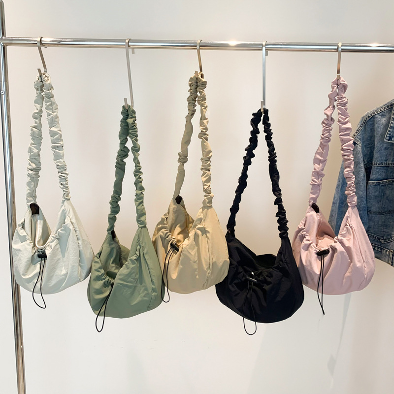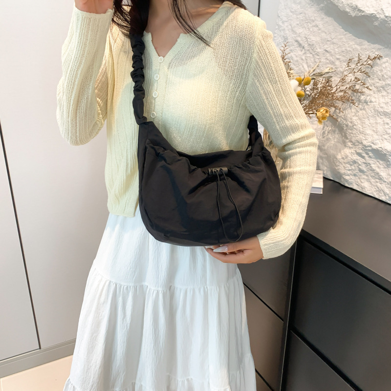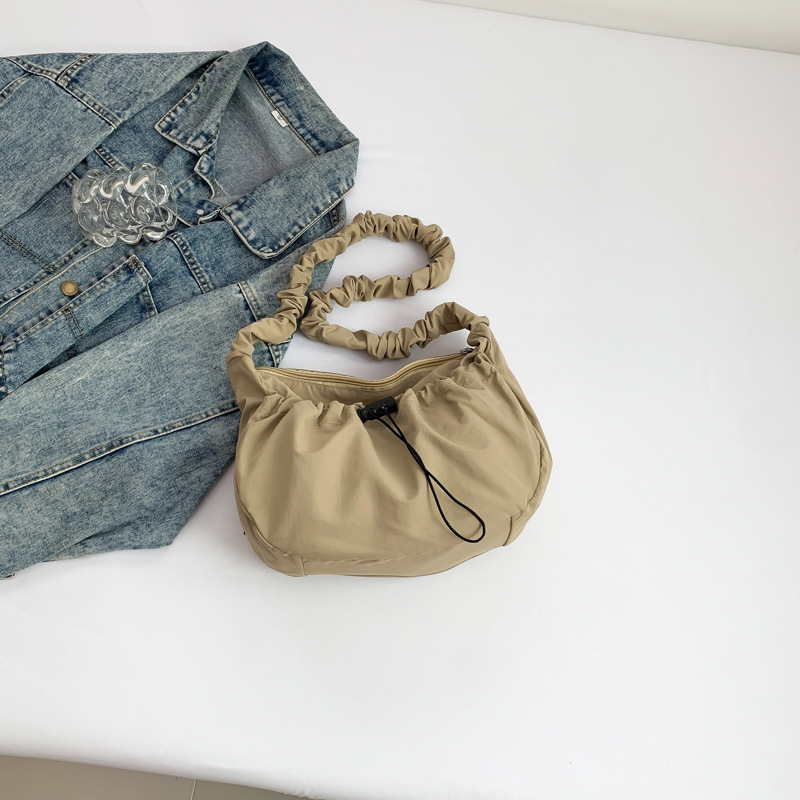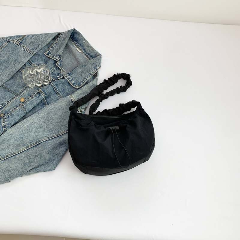 韩国东大门ins百搭抽拉绳褶皱云朵帆布托特包尼龙单肩腋下斜挎包