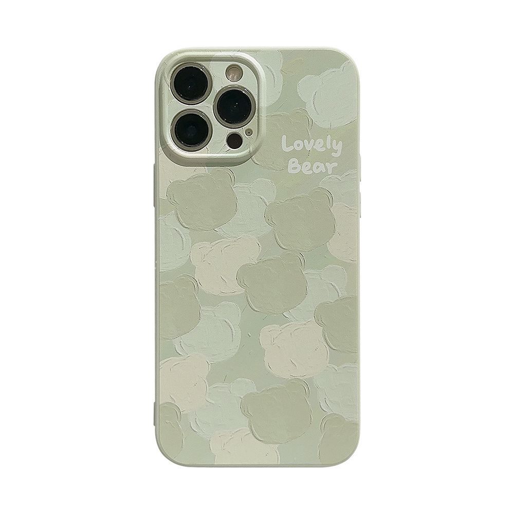 适用16/14promax可爱小熊头iphone15苹果手机壳13硅胶绿色油画11套