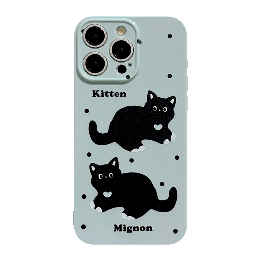 适用iPhone16日韩ins蓝色波点猫咪iphone14手机壳苹果13pro max适用11软