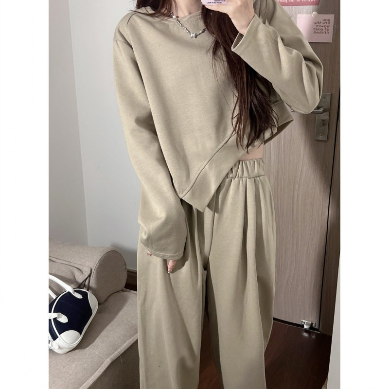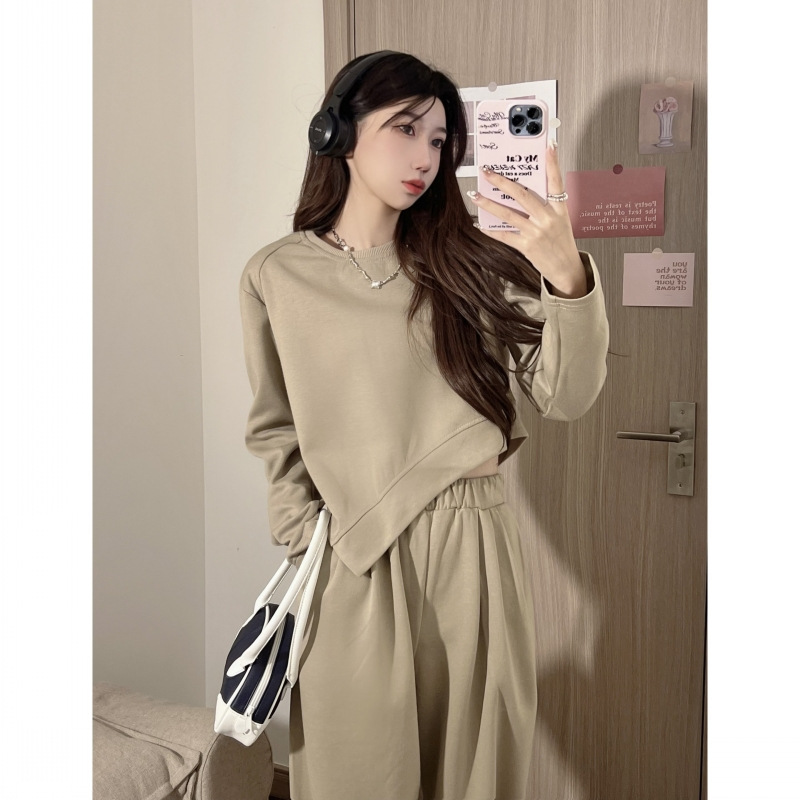 小个子酷辣风设计感套装女个性不规则上衣加舒适休闲直筒裤两件套
