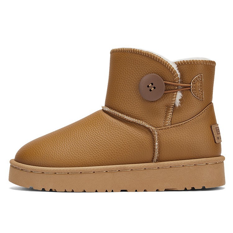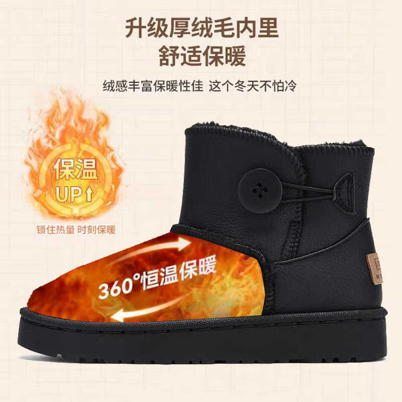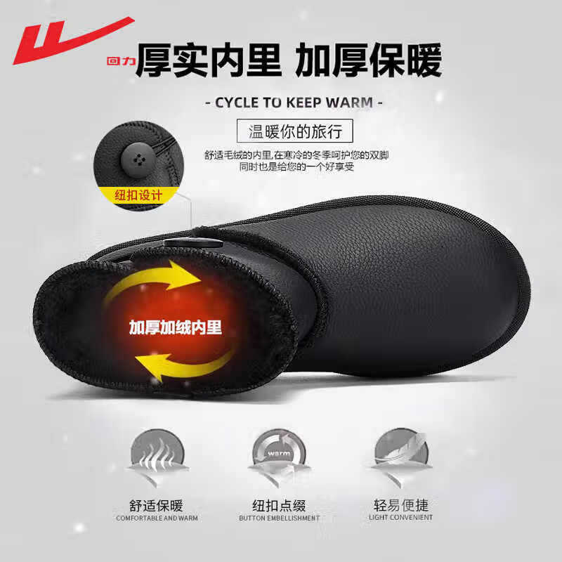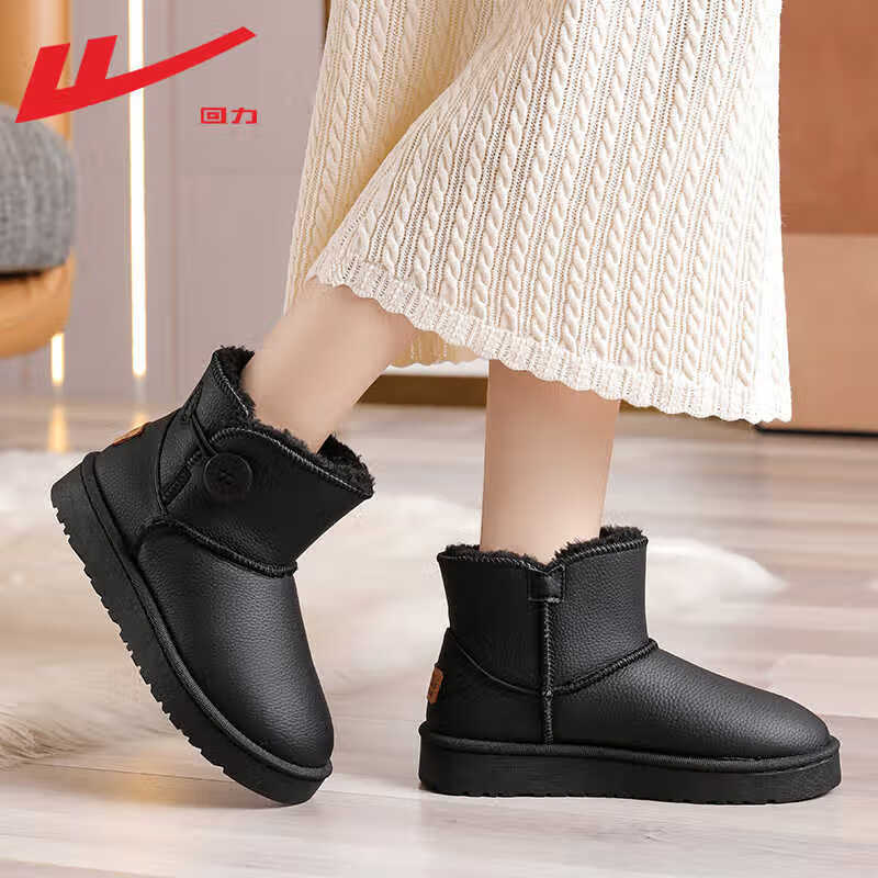 回力雪地靴女冬季2025年新款加绒加厚袜子靴黑色皮面菠萝包棉鞋女