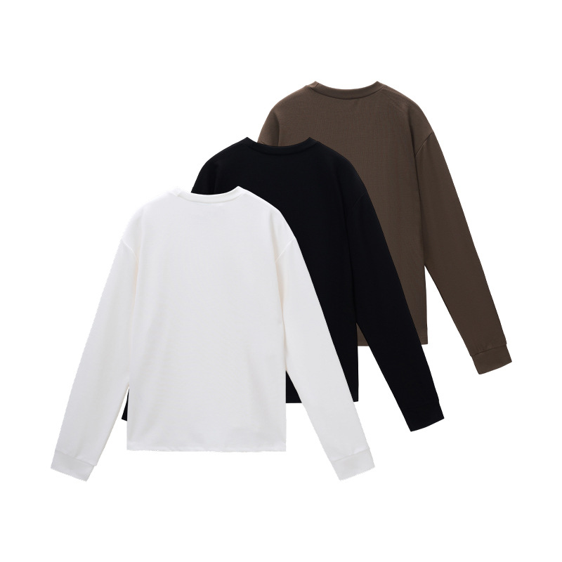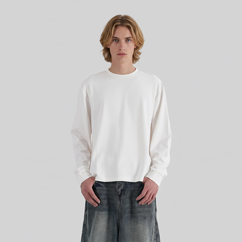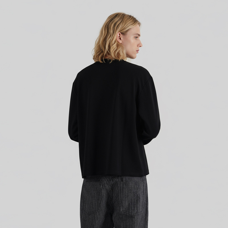 LKTM男装 秋冬老钱风短款铜氨软糯长袖打底男boxy长tee小领口上衣