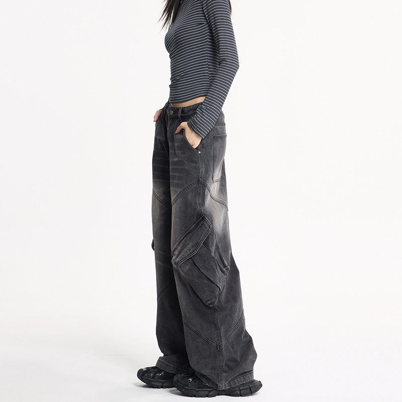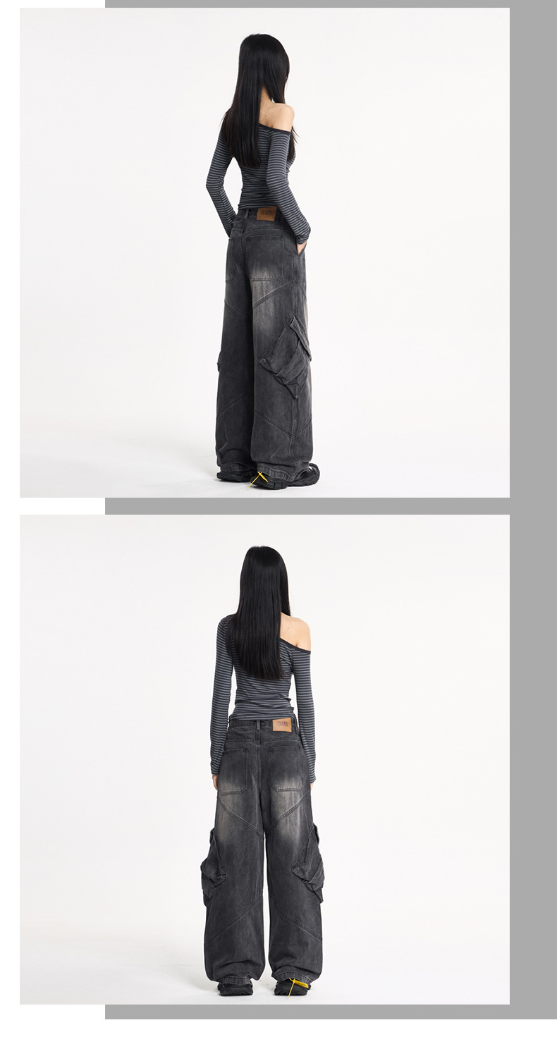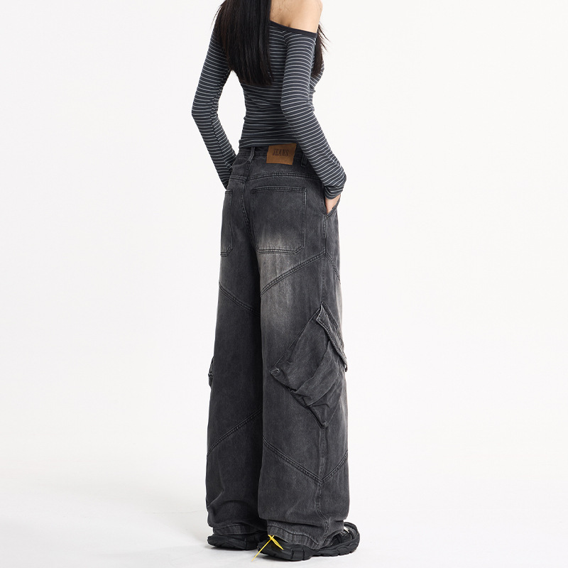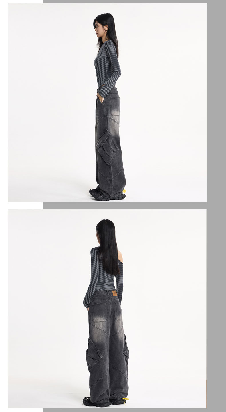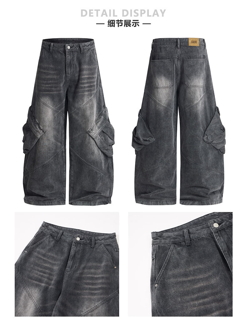 LKTM男装 美式高街大口袋设计工装牛仔裤男女oversize阔腿弯刀裤