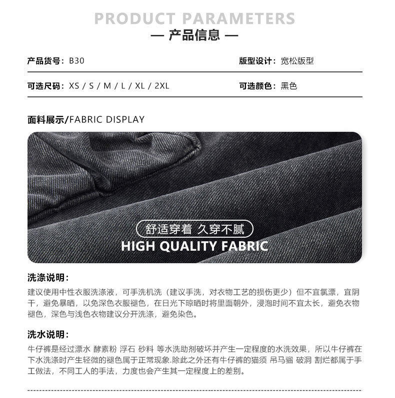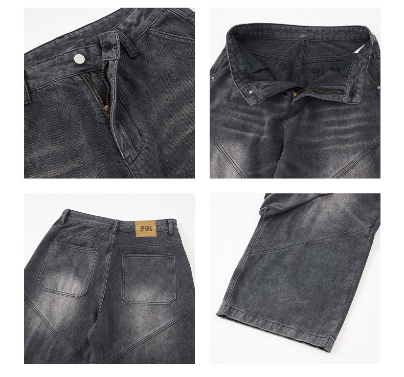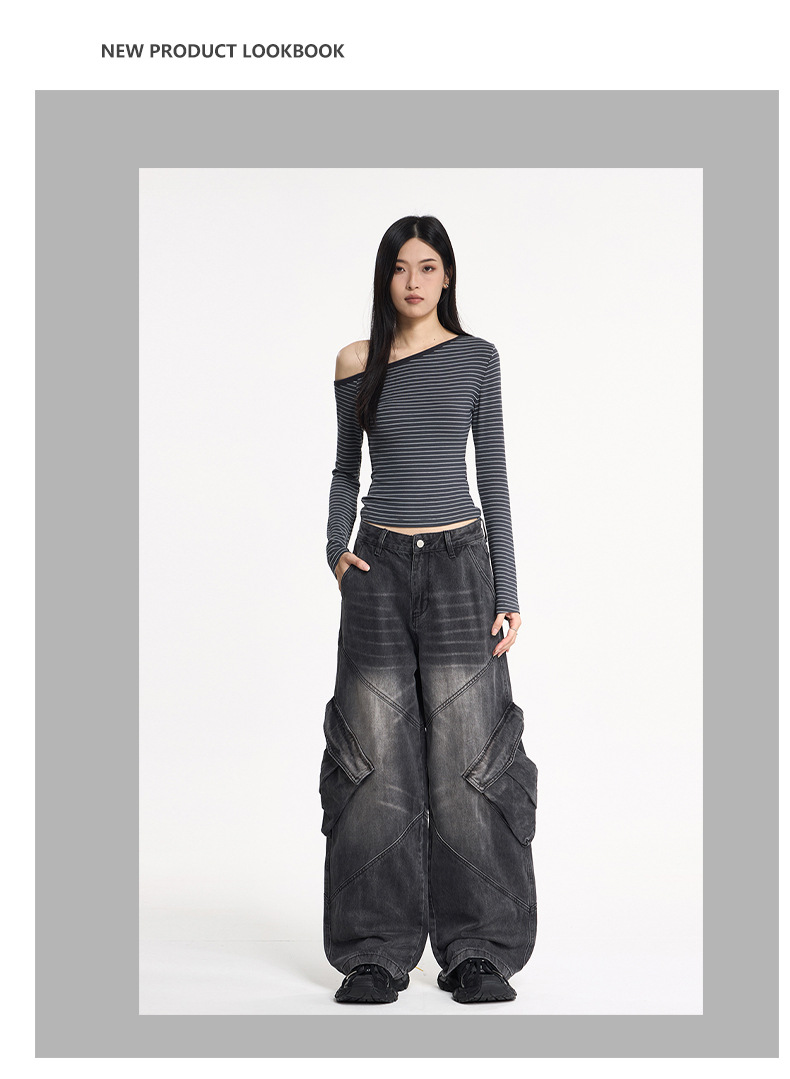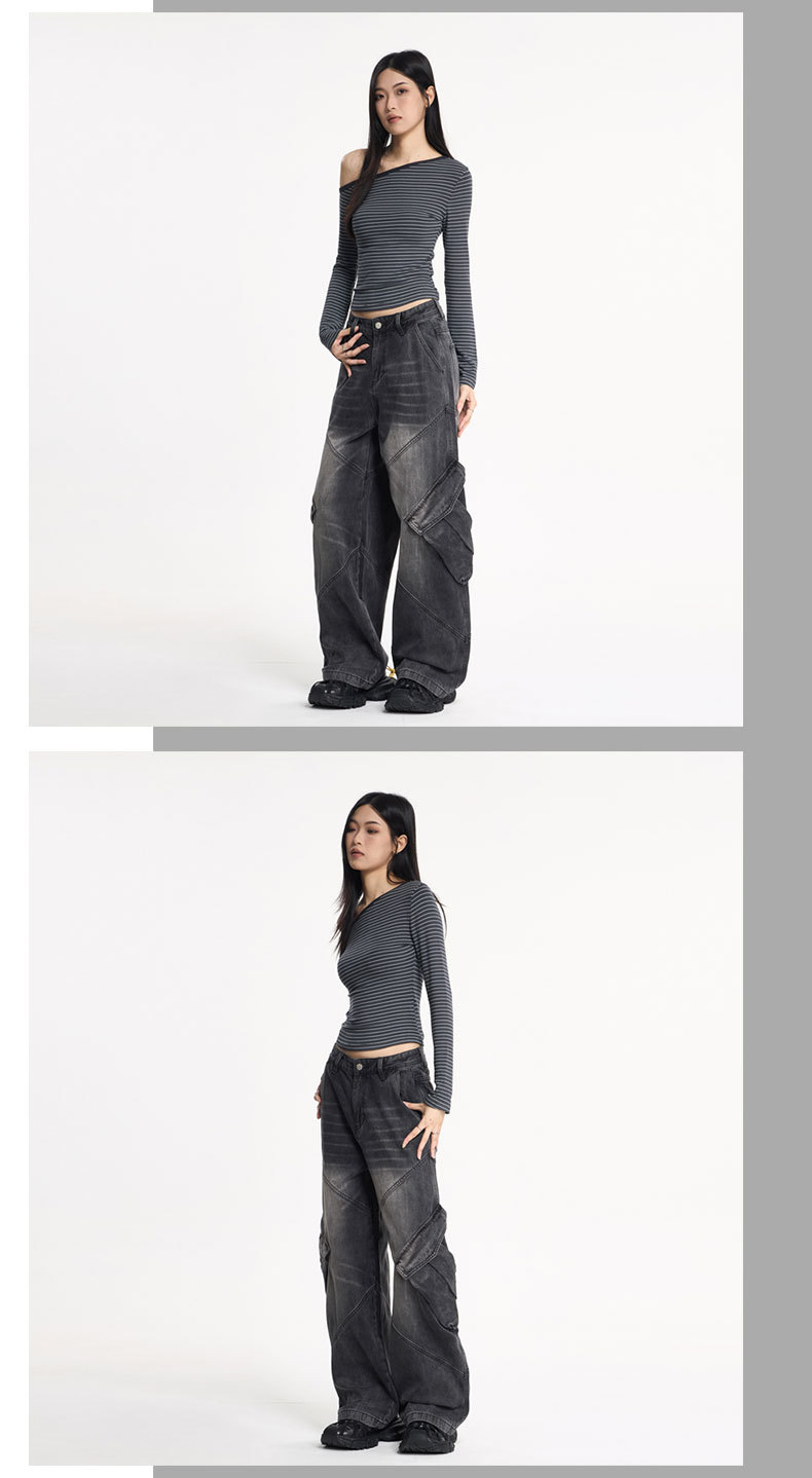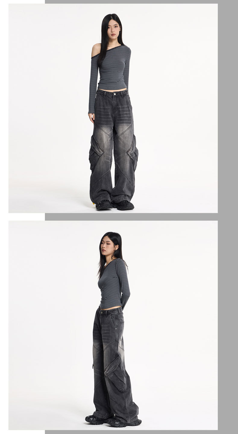 LKTM男装 美式高街大口袋设计工装牛仔裤男女oversize阔腿弯刀裤