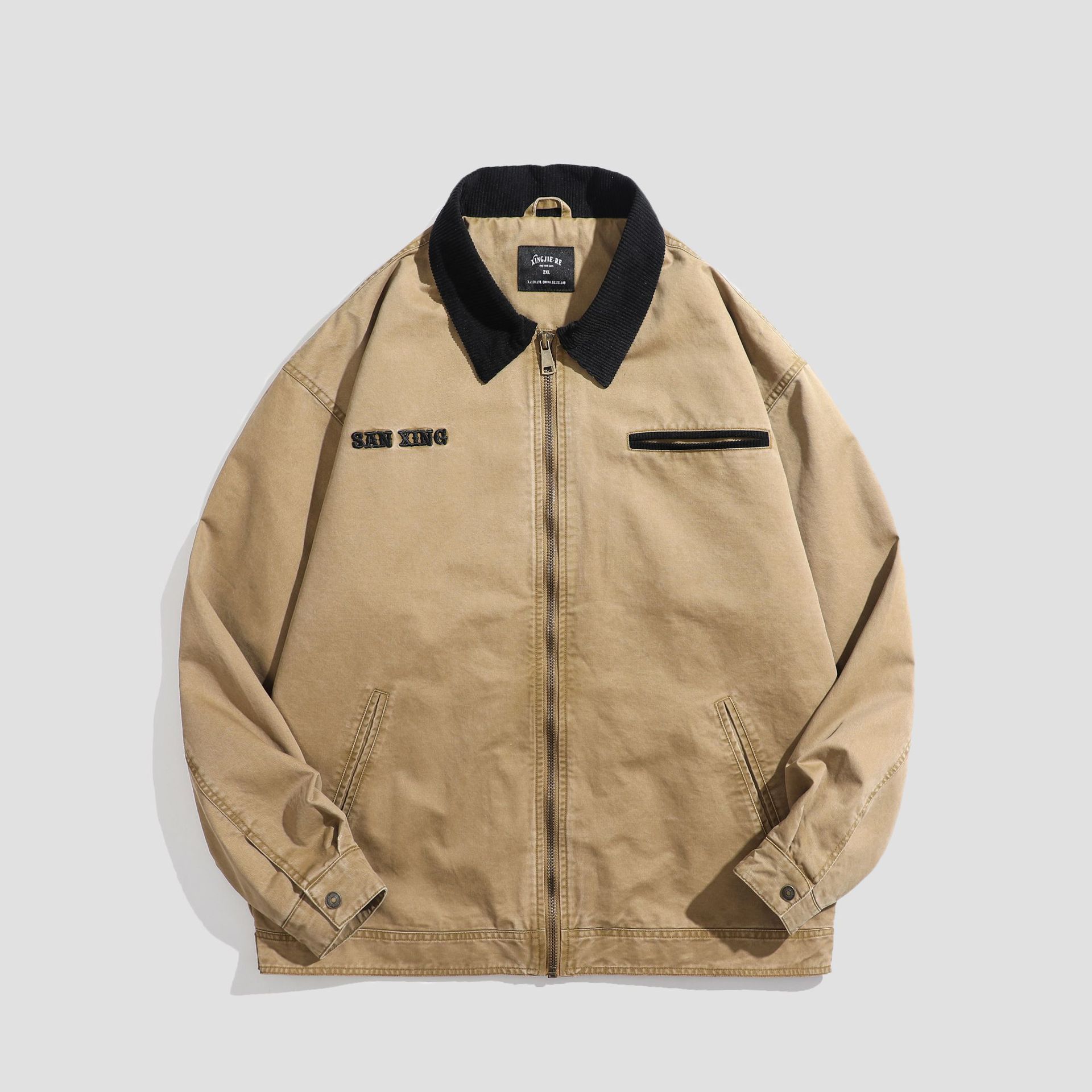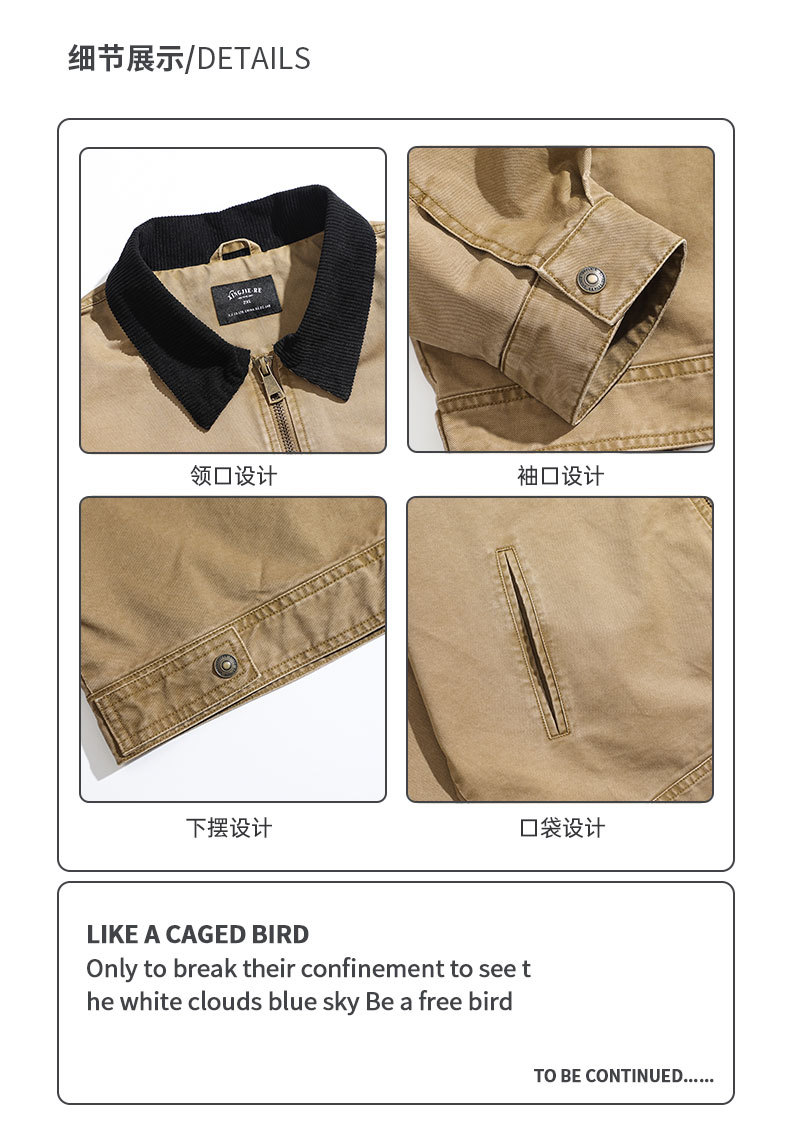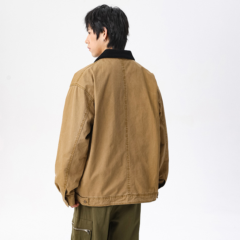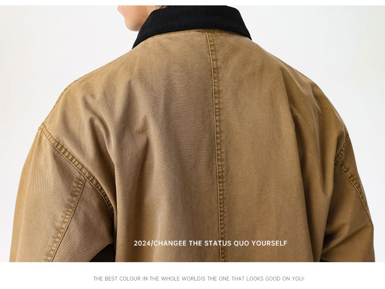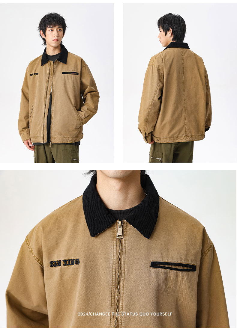 LKTM男装#高密双经斜棉300g重磅翻领夹克男水洗字母刺绣休闲外套