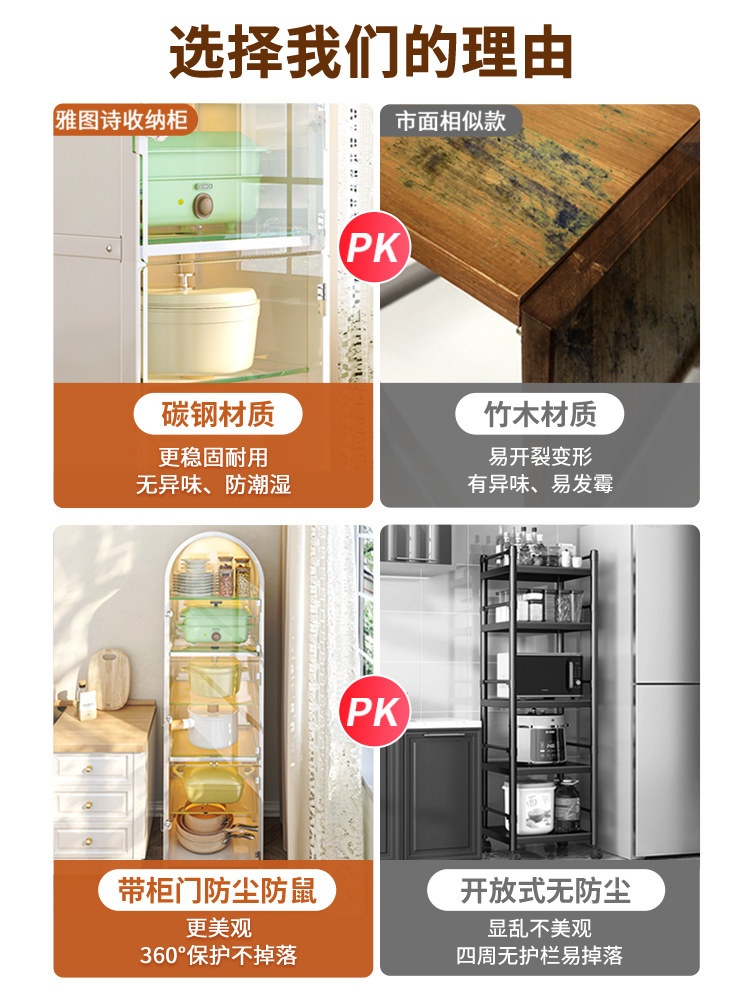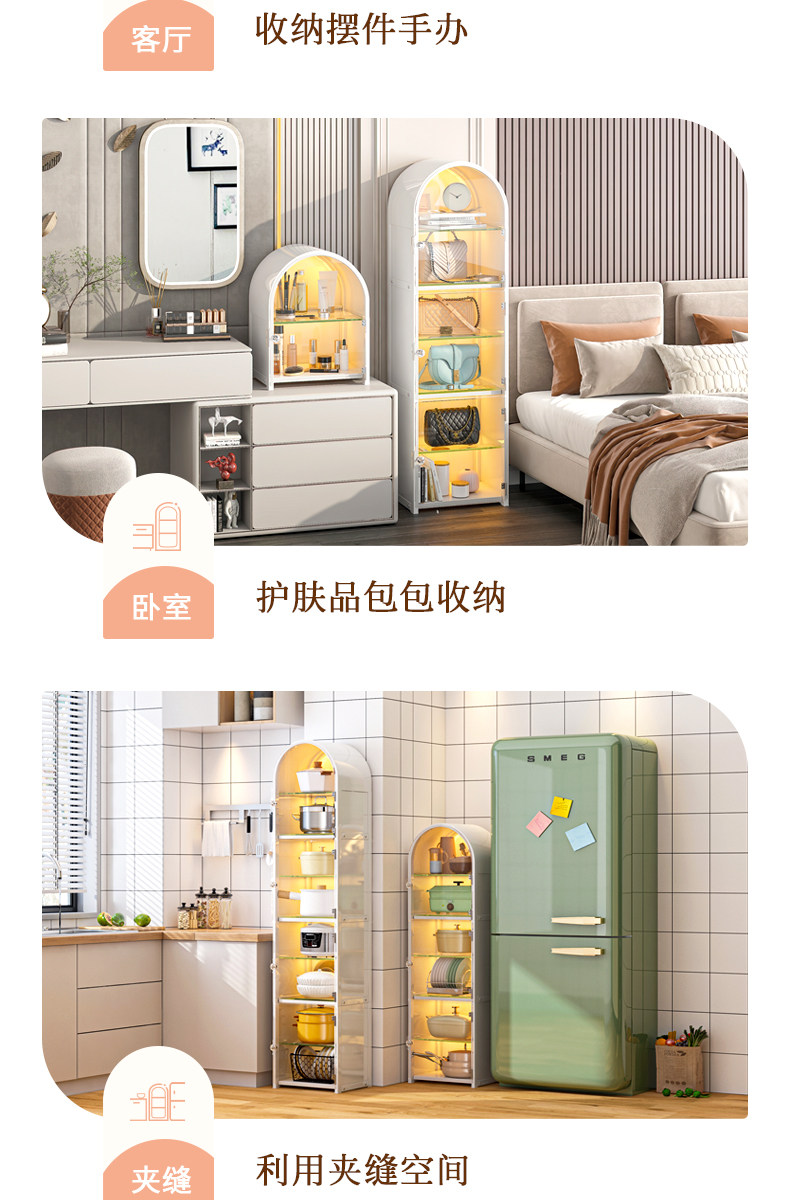 雅图诗厨房夹缝置物架落地多层冰箱缝隙多功能锅具拱形窄边柜收纳