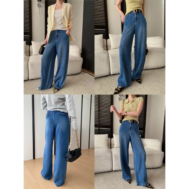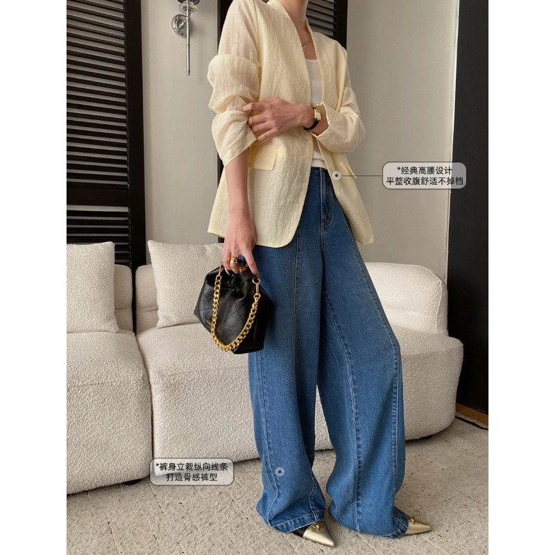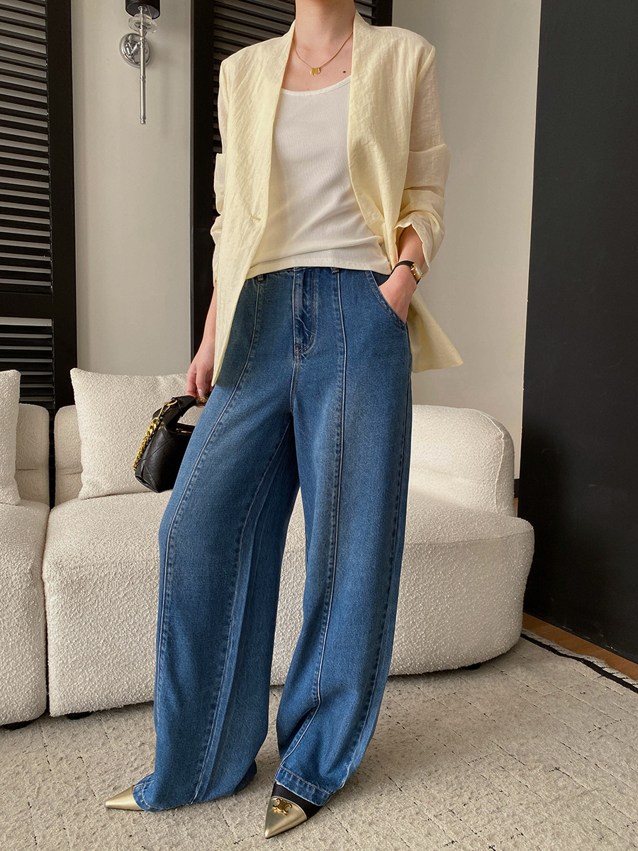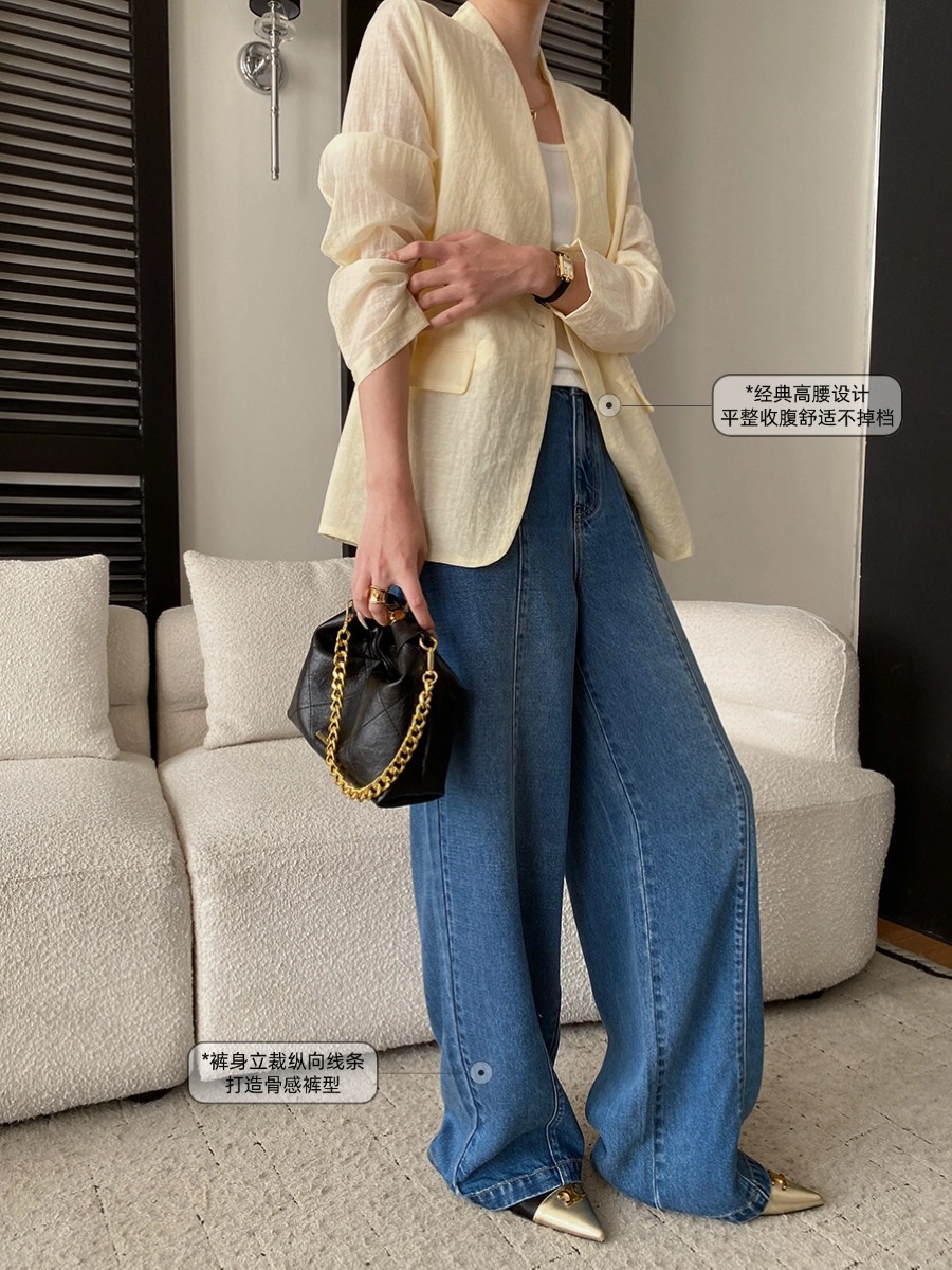 司南时髦精私服解构线条设计感高腰显瘦阔腿天丝牛仔裤