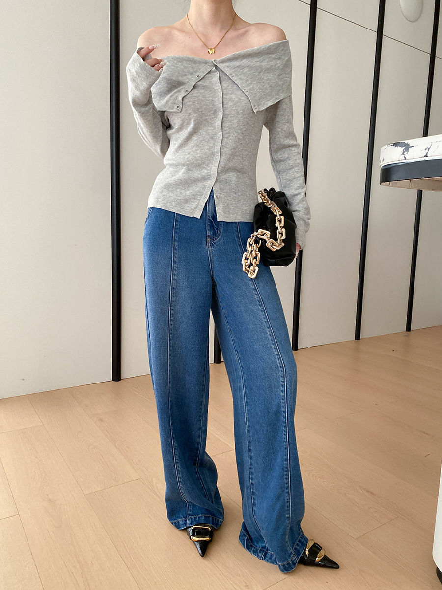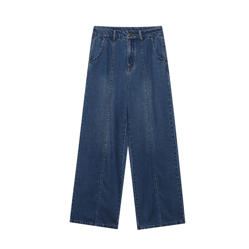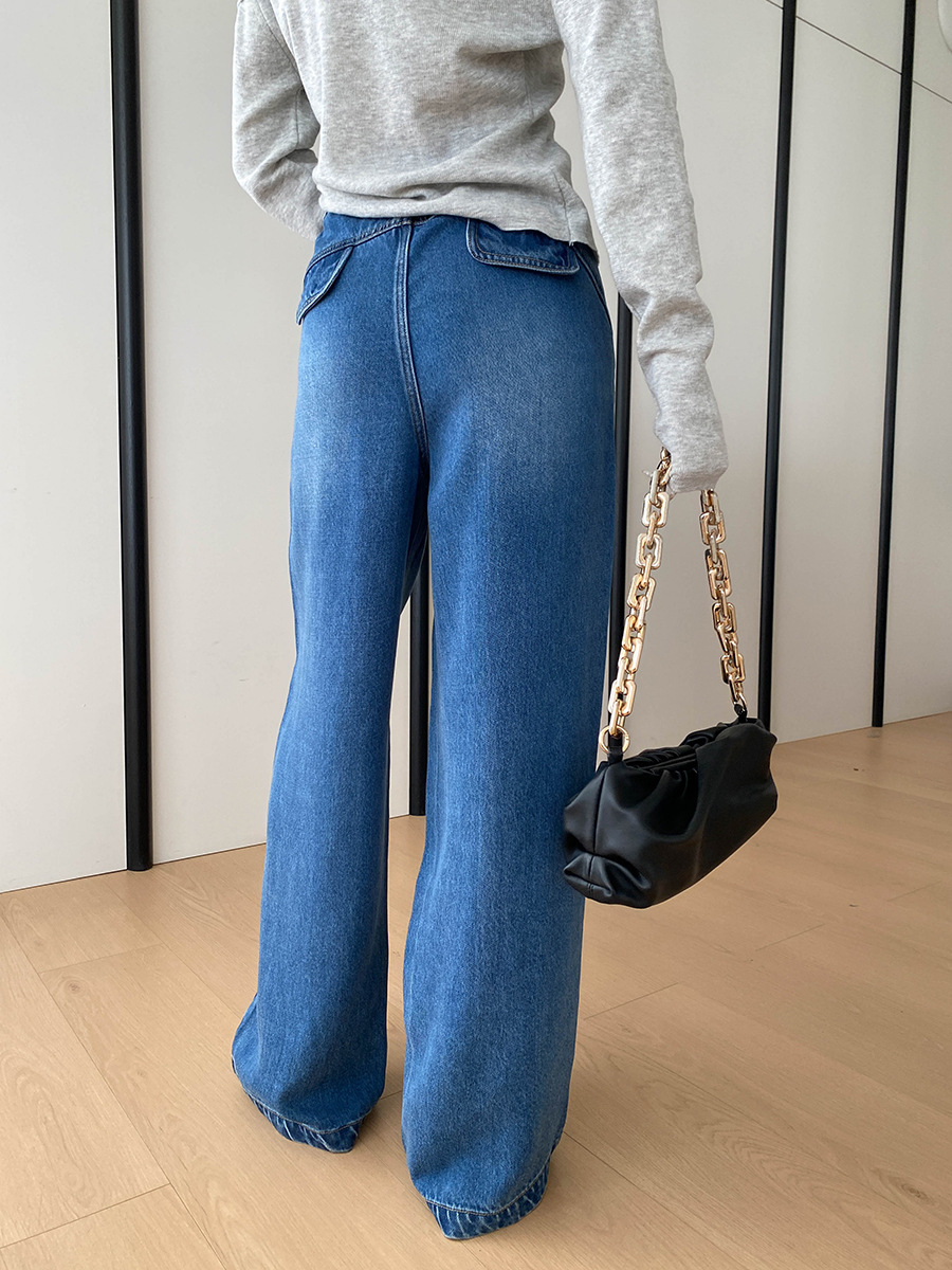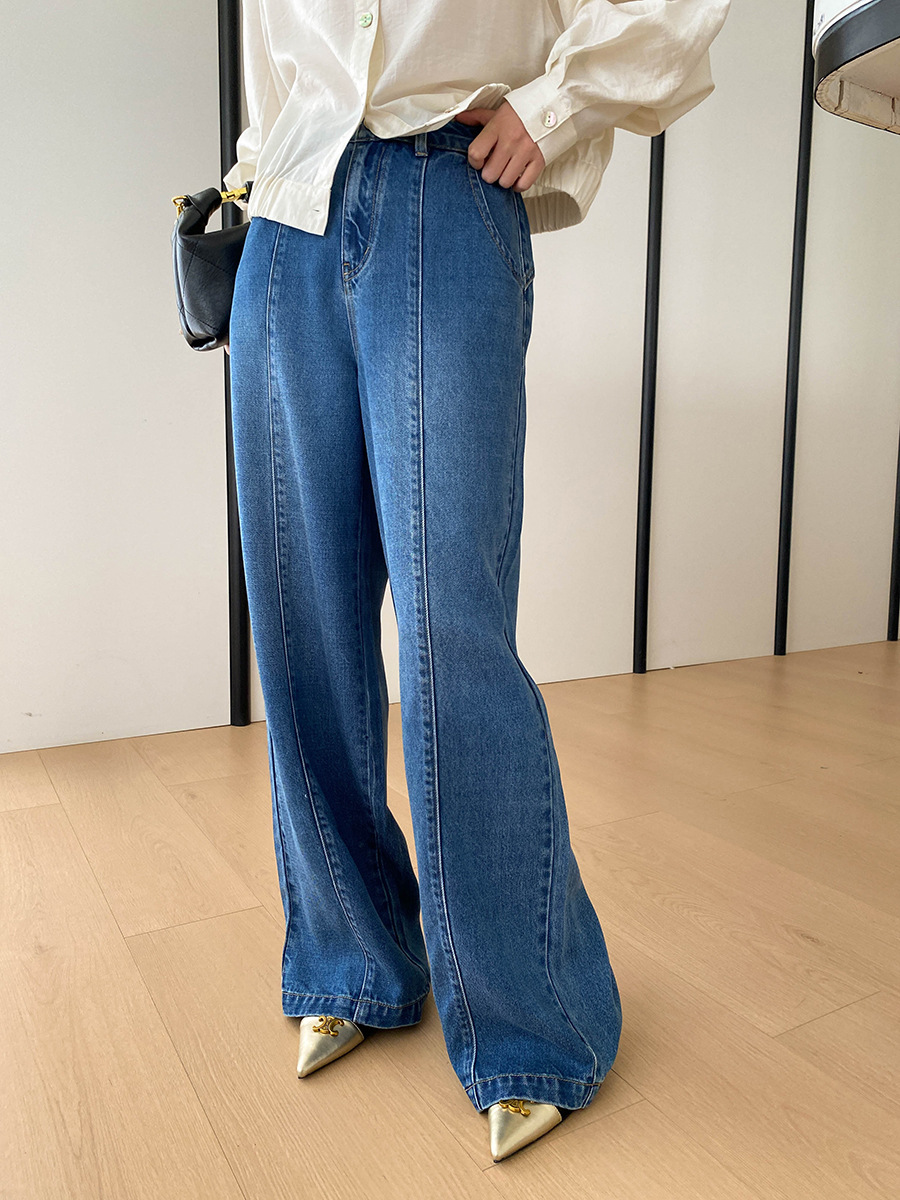 司南时髦精私服解构线条设计感高腰显瘦阔腿天丝牛仔裤