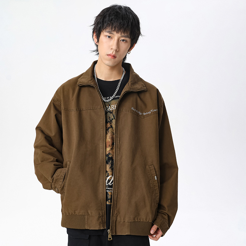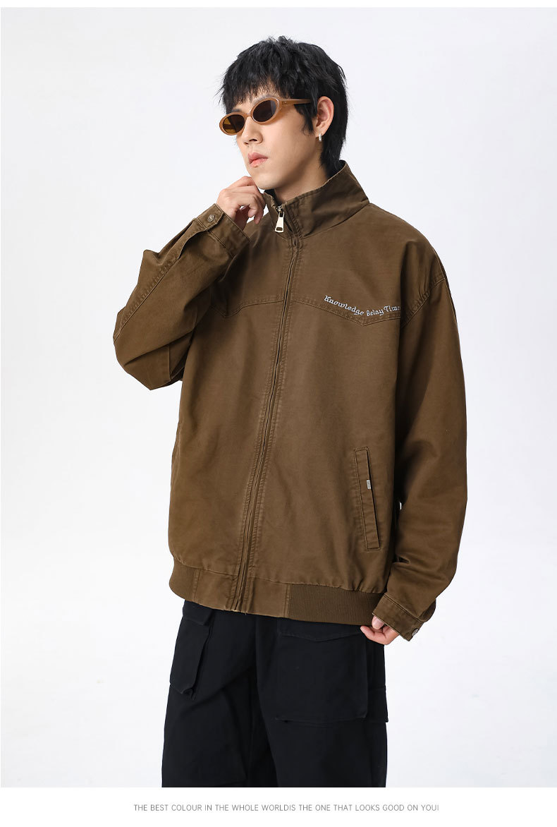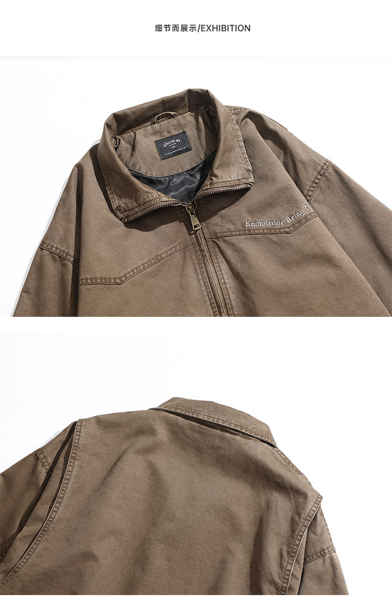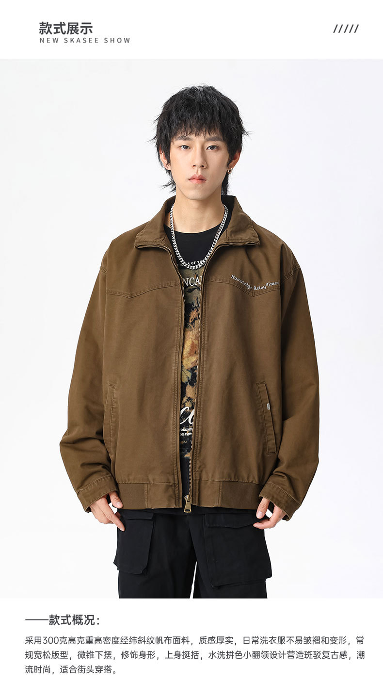 LKTM男装#秋冬季立领宽松复古水洗工装夹克重磅300g字母刺绣外套