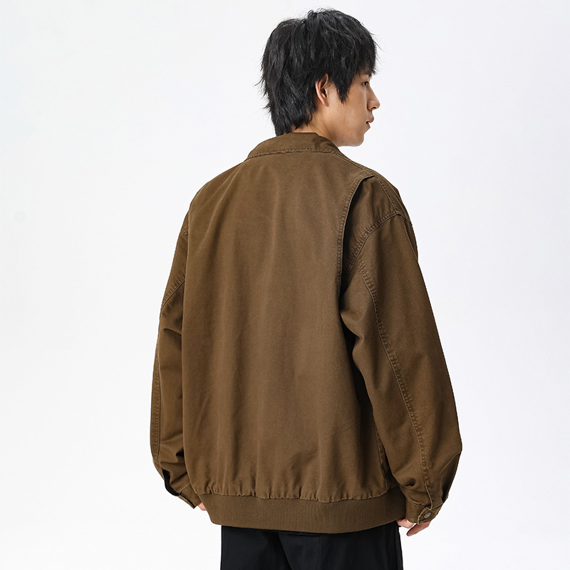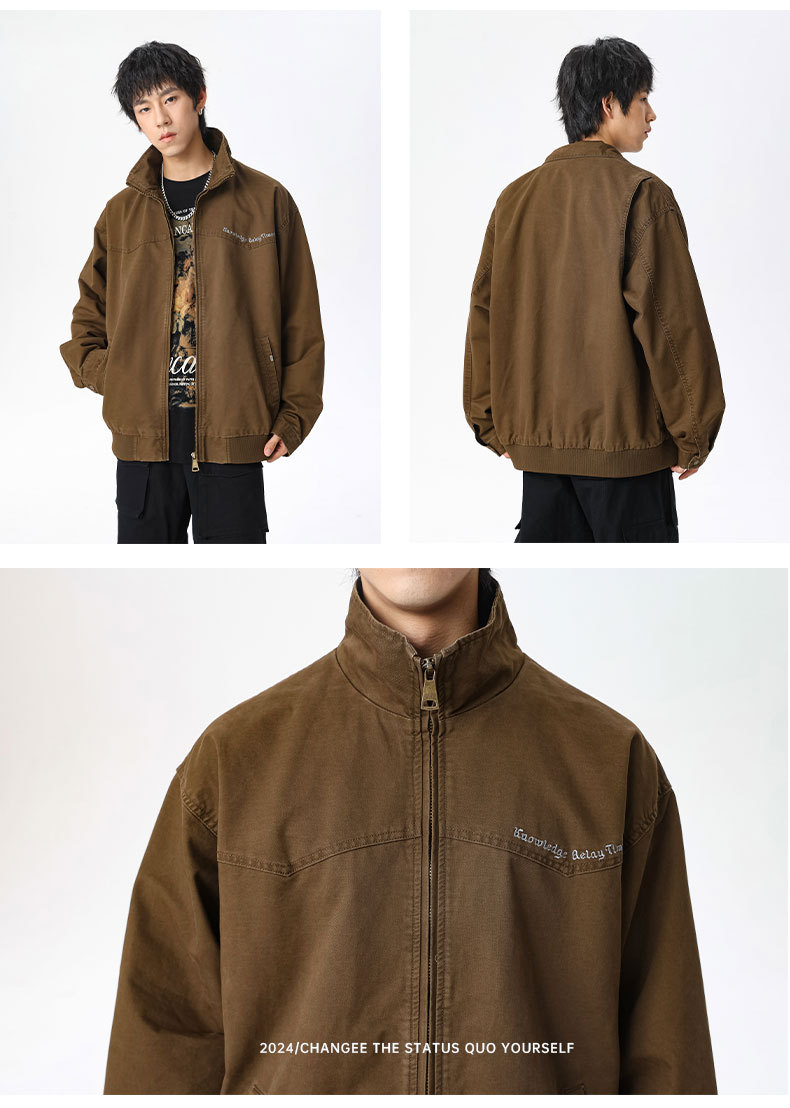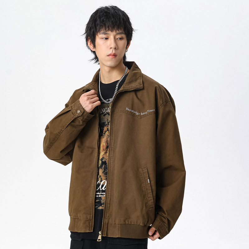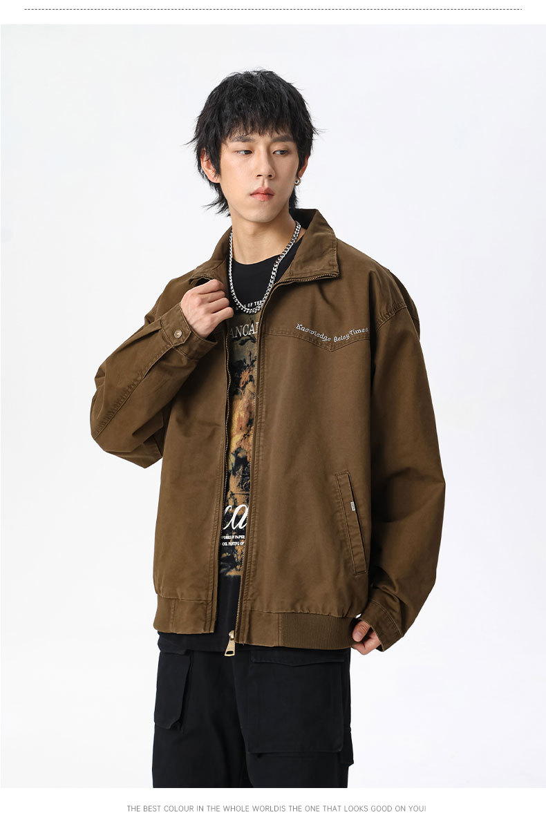 LKTM男装#秋冬季立领宽松复古水洗工装夹克重磅300g字母刺绣外套