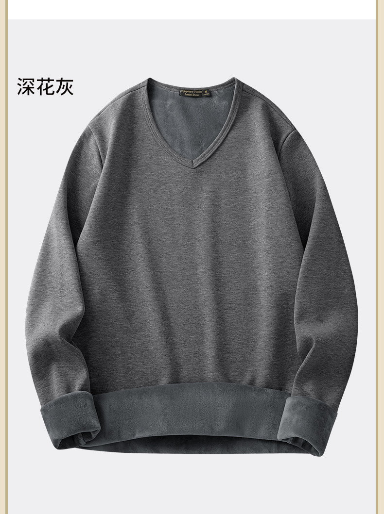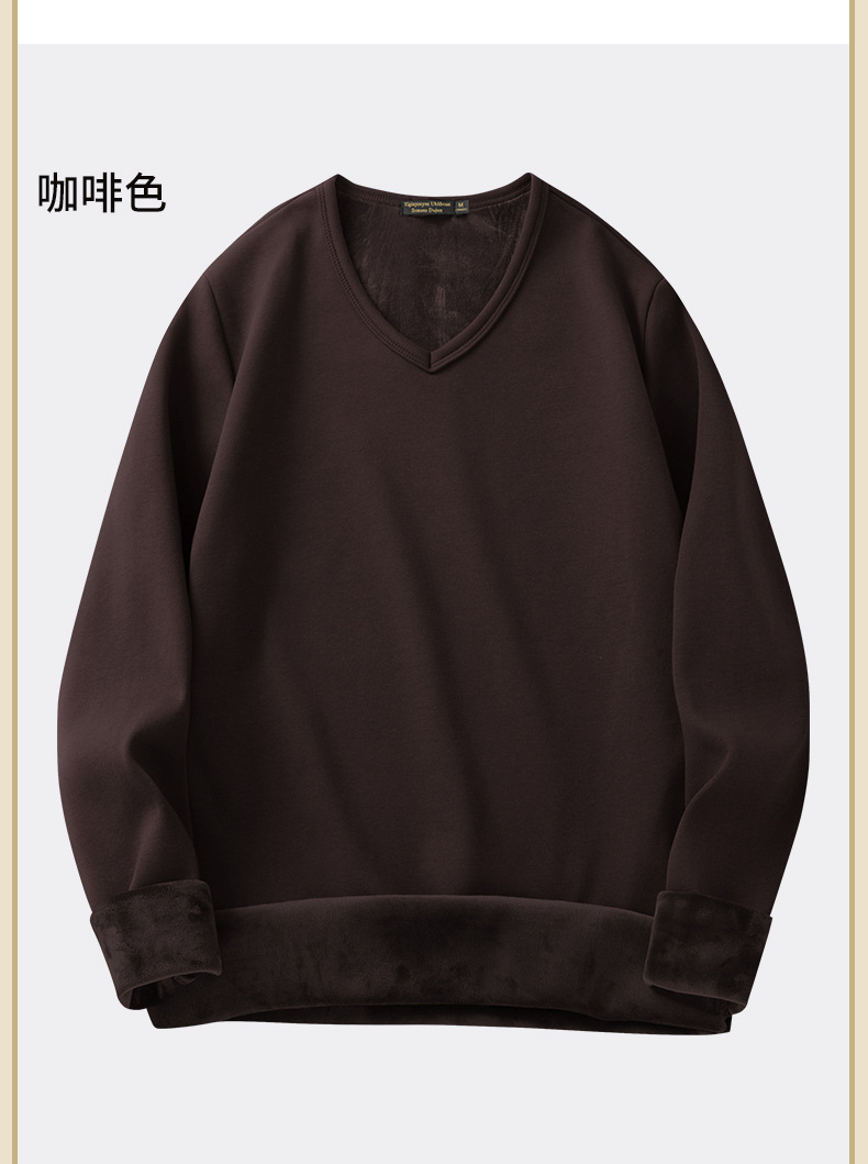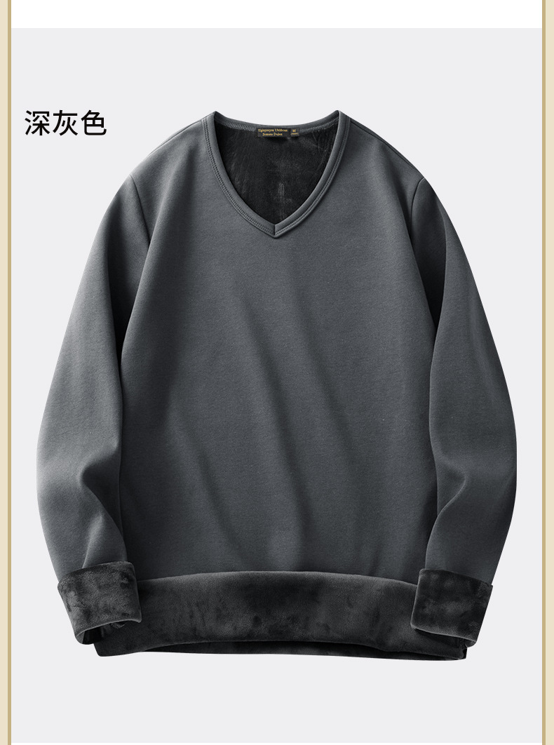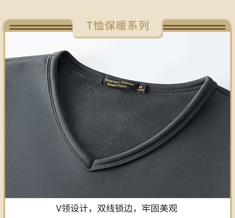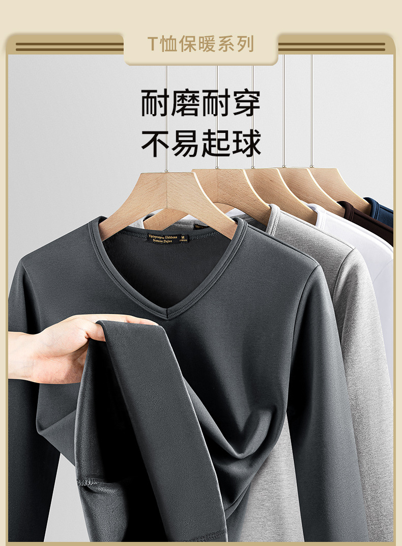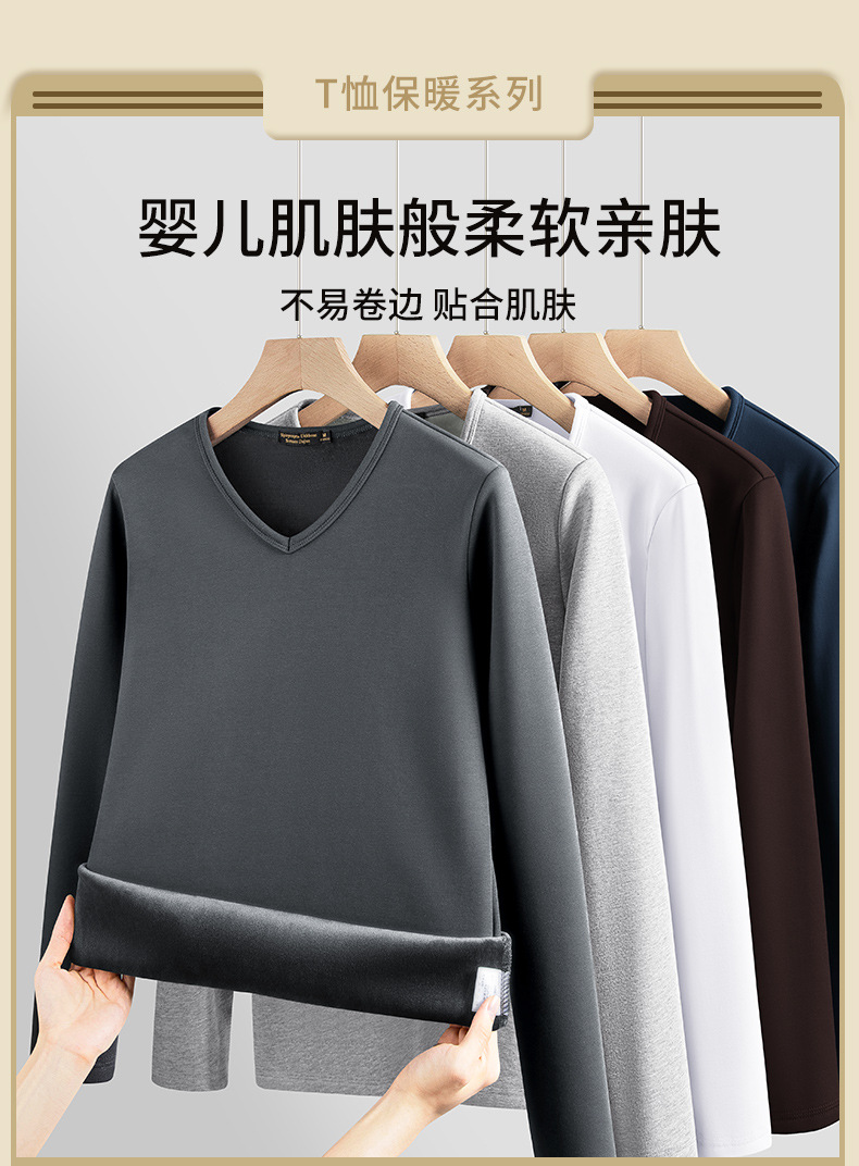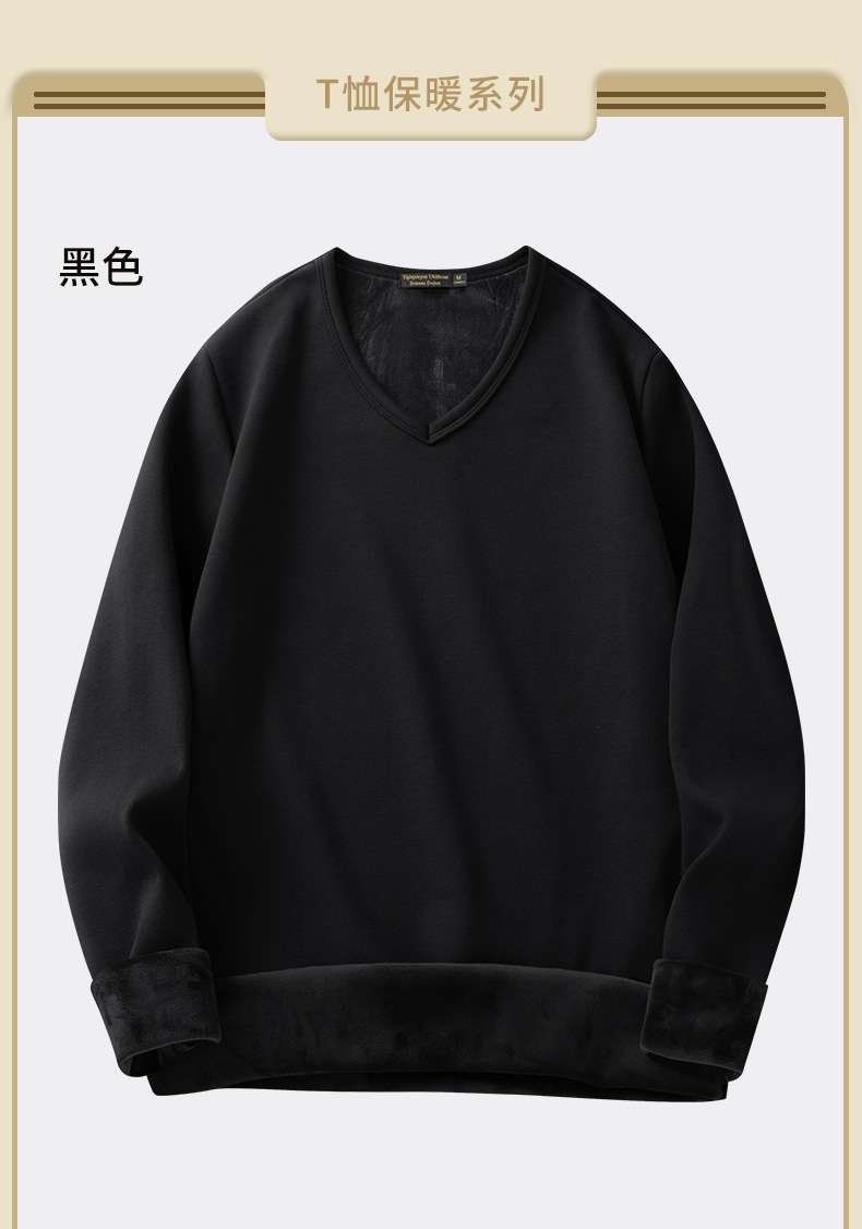 秋冬季男士长袖t恤加绒v领打底衫纯色加厚保暖衣服秋衣内衣